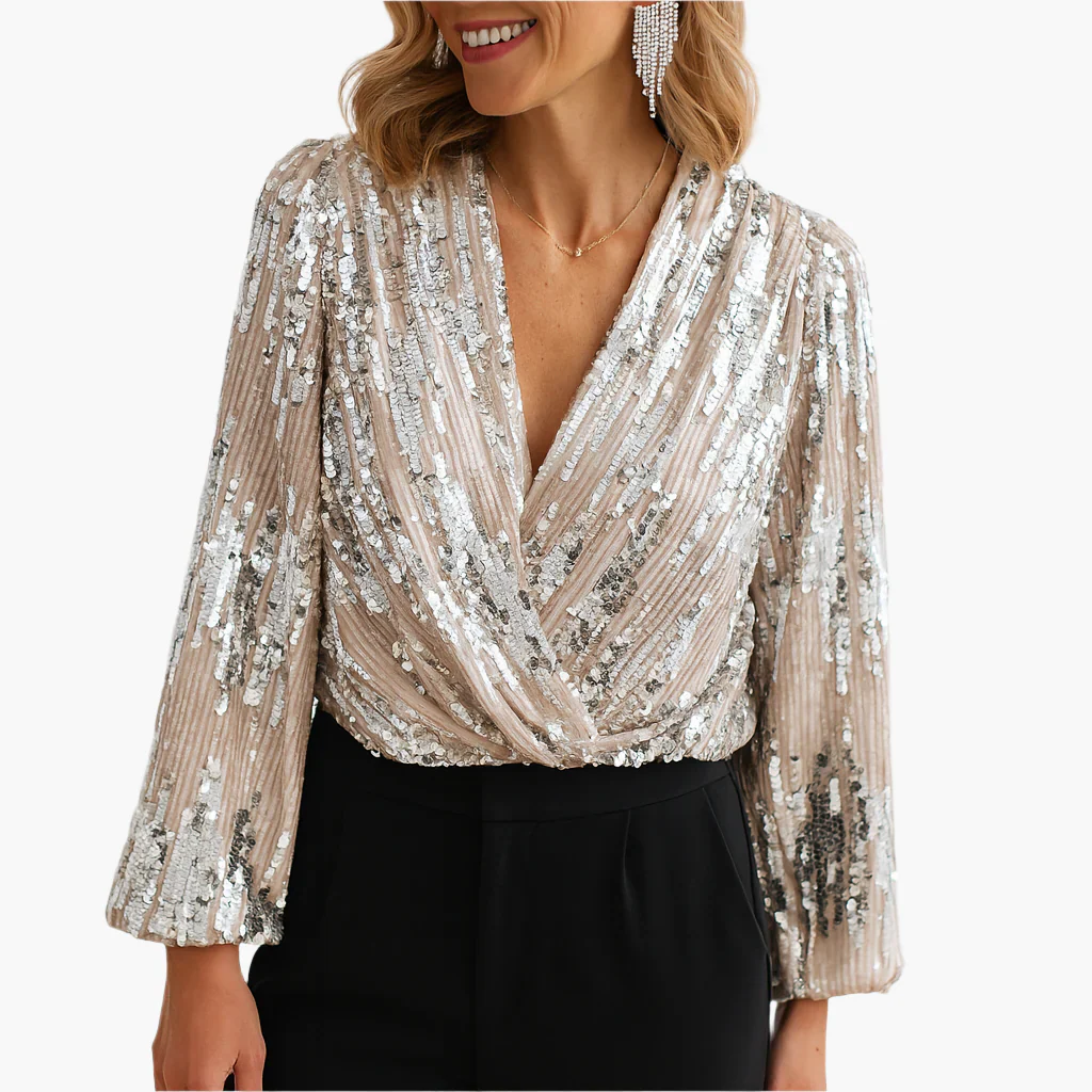 Blouse Femme Élégante à Sequins Style Vintage pour Soirée et Événement