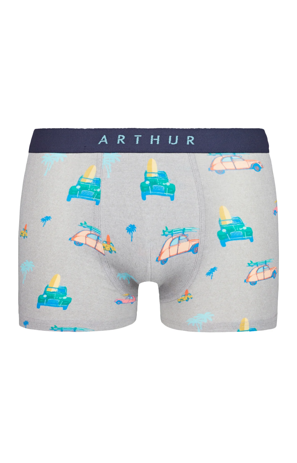 Ce boxer motif 2CV, dessiné sous licence exclusive avec Citroën, est une ôde à la vie au ralenti et aux activités estivales. Pour porter la détente et la touche rétro contre votre peau, grâce à sa coupe courte, son entrejambe doublée et sa ceinture élastiquée contrastée. Vous atteindrez le summum du style… sans passer par les bouchons ! Icône de la voiture française mignonne et sympathique, notre chère 2CV nationale prend un petit air de Californie pour rivaliser avec les vans de surfers !