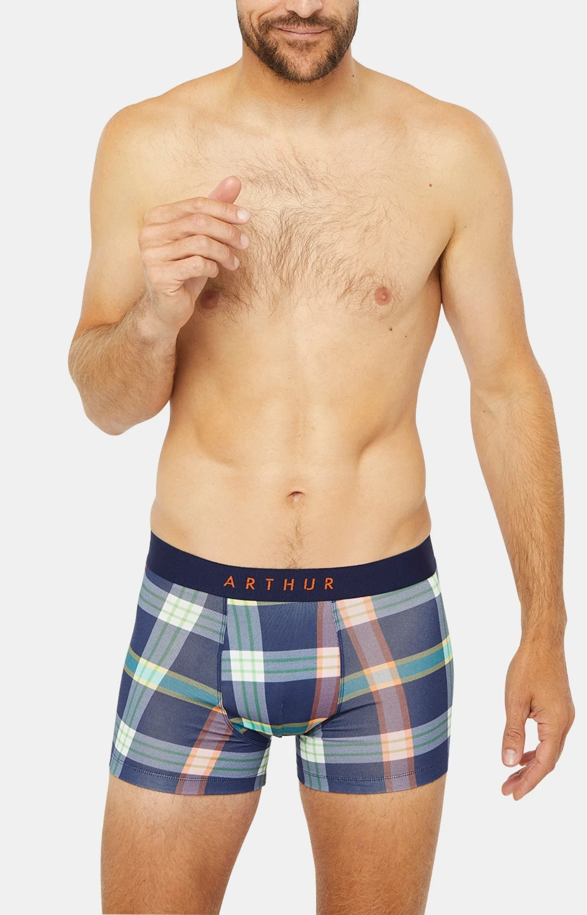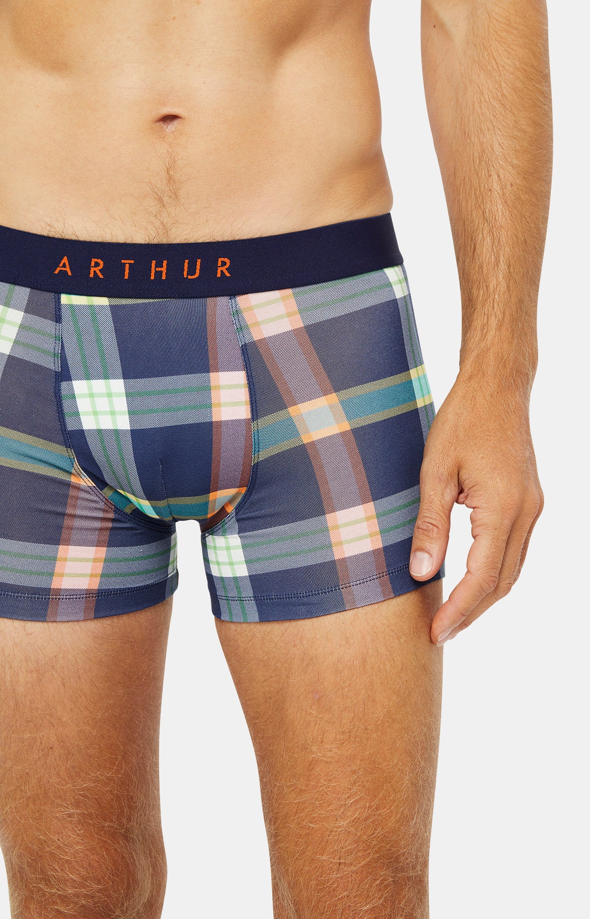 – Boxer Homme – Jersey de coton issu de l’agriculture biologique – Coutûres plates pour limiter les frottements et les irritations – Bande élastiquée siglée ARTHUR – Motif exclusif créé à Paris – Confectionné dans nos ateliers partenaires en Turquie
