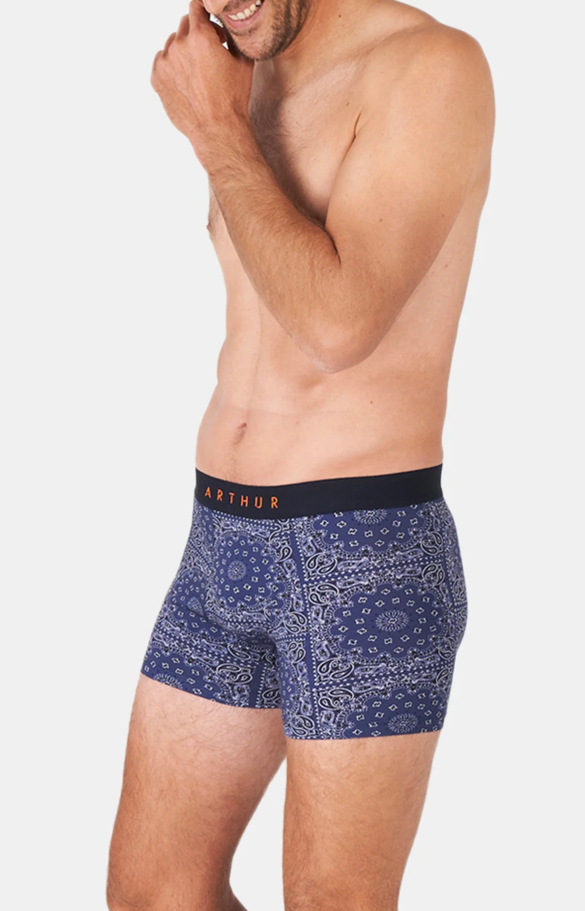 – Boxer Homme – Jersey de coton issu de l’agriculture biologique – Coutûres plates pour limiter les frottements et les irritations – Bande élastiquée siglée ARTHUR – Motif exclusif créé à Paris – Confectionné dans nos ateliers partenaires au Portugal