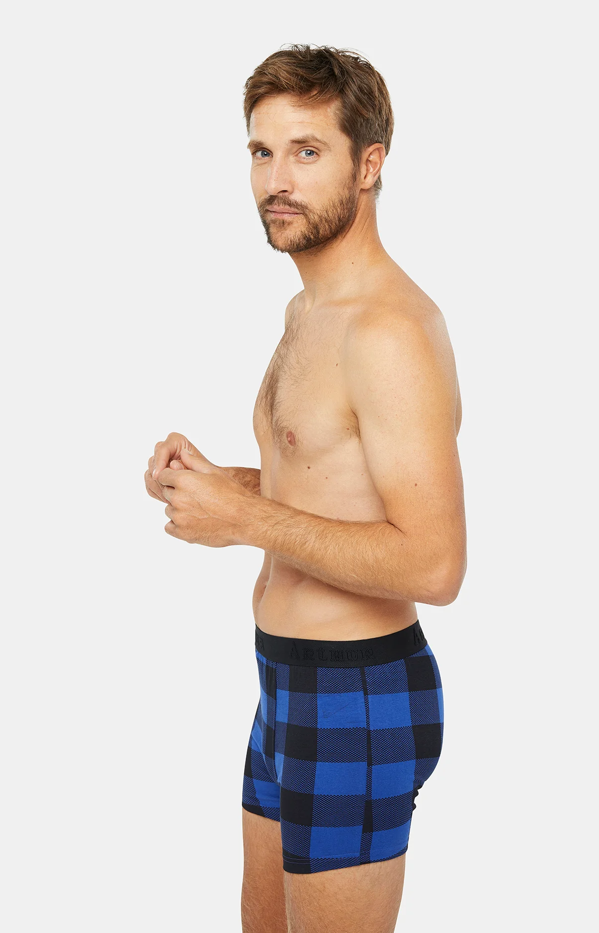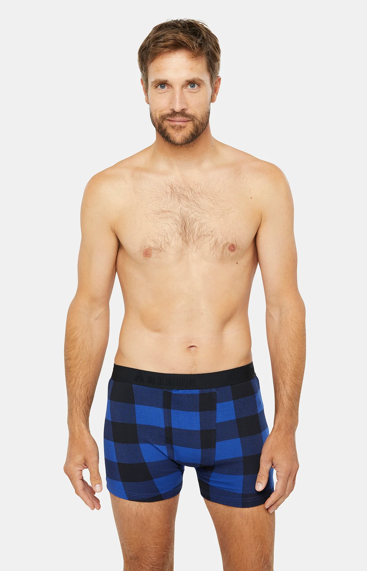 – Boxer homme imprimé en coton – Coutures plates pour limiter les irritations et les frottements – Bande élastique siglée Arthur – Dessin exclusif créé à Paris – Confection dans nos ateliers partenaires en Inde