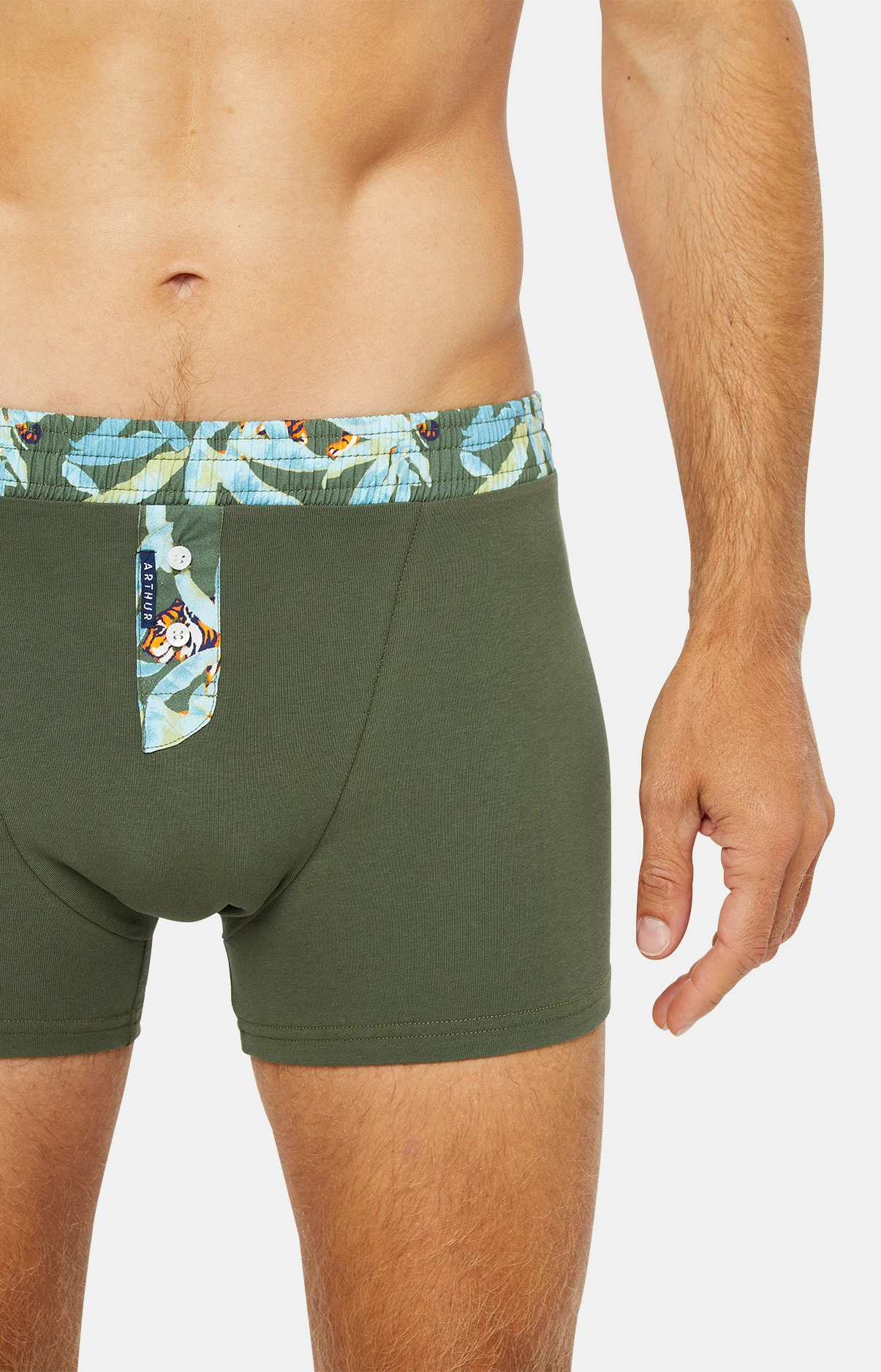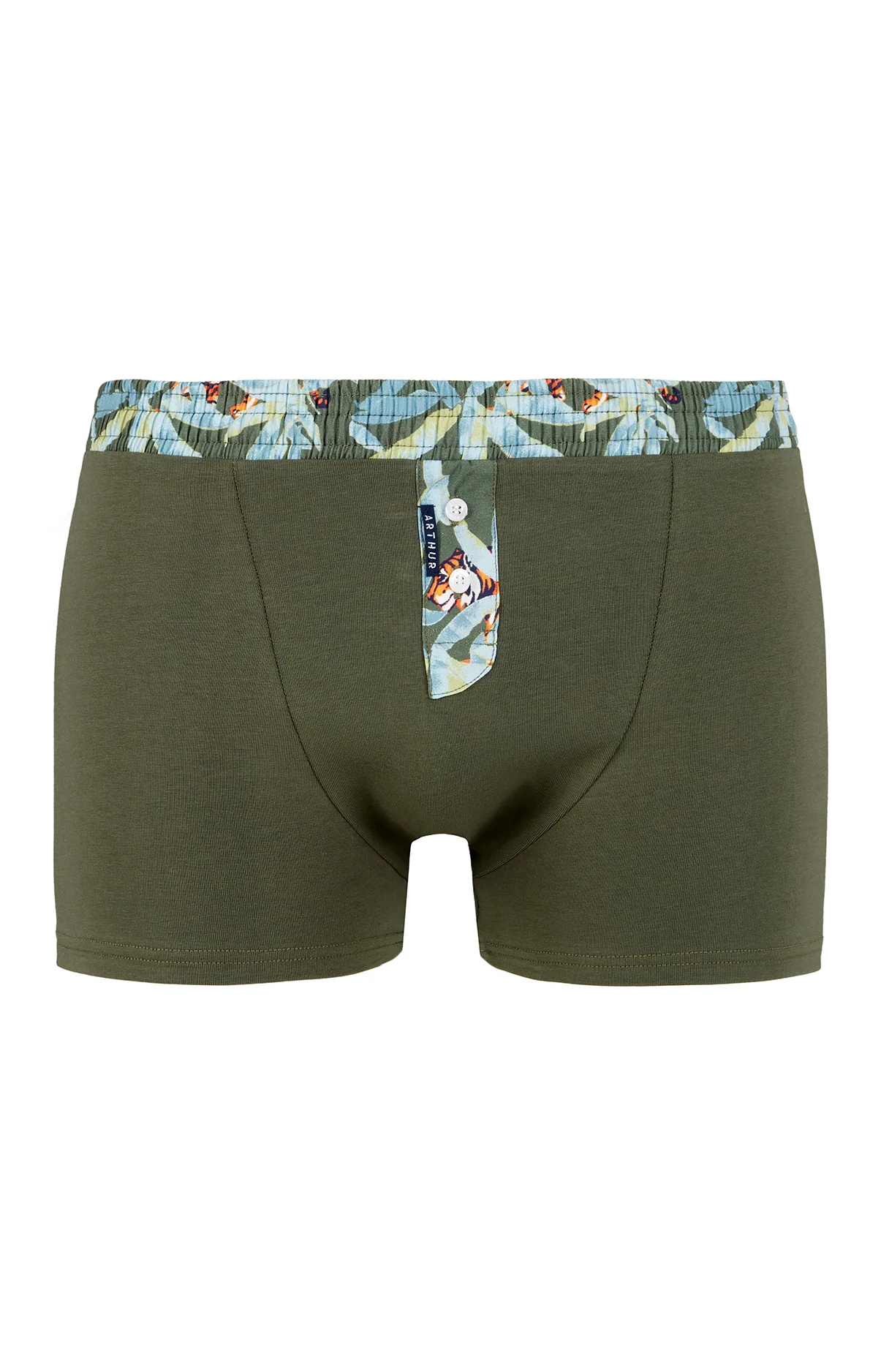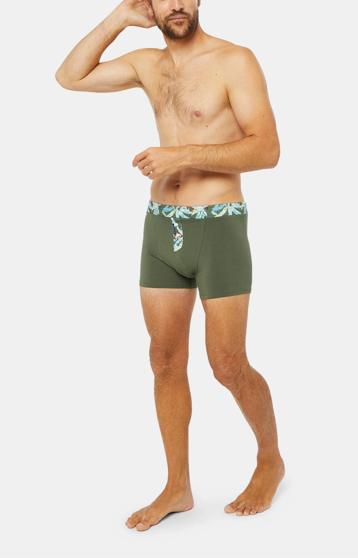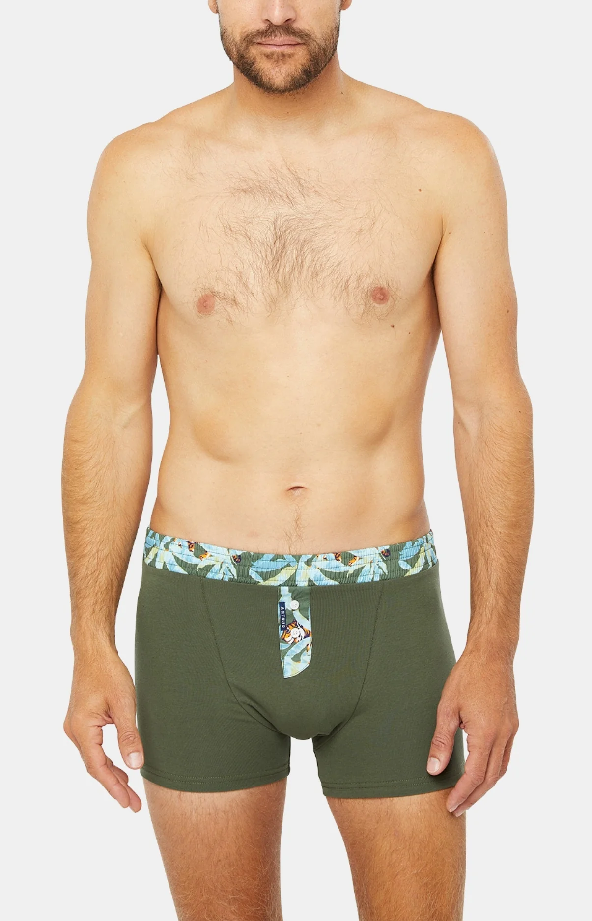 – Boxer Homme en jersey de coton – Ceinture élastiquée et braguette contrastées dans un tissu à motifs – Motif exclusif créé à Paris – Confectionné dans nos ateliers partenaires au Maroc