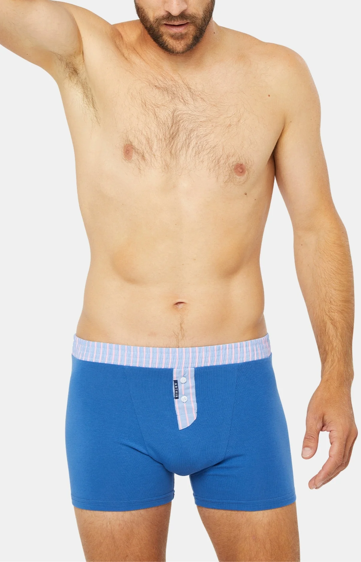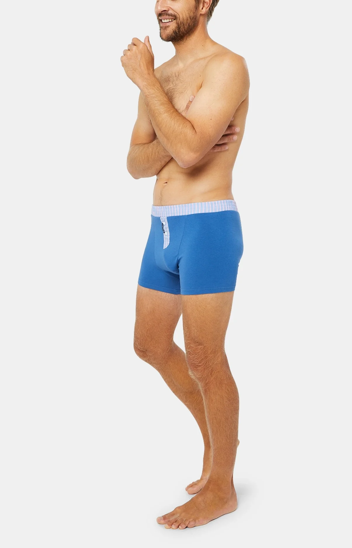 – Boxer Homme en jersey de coton – Ceinture élastiquée et braguette contrastées dans un tissu à motifs – Motif exclusif créé à Paris – Confectionné dans nos ateliers partenaires au Maroc