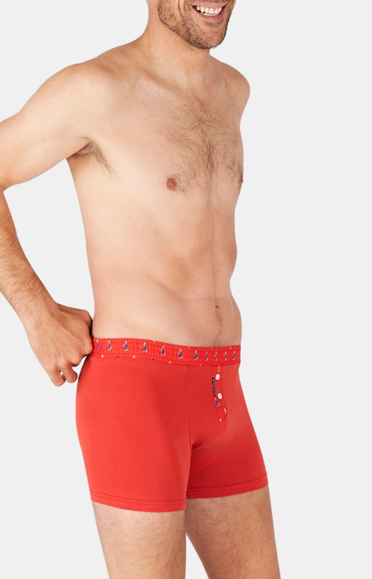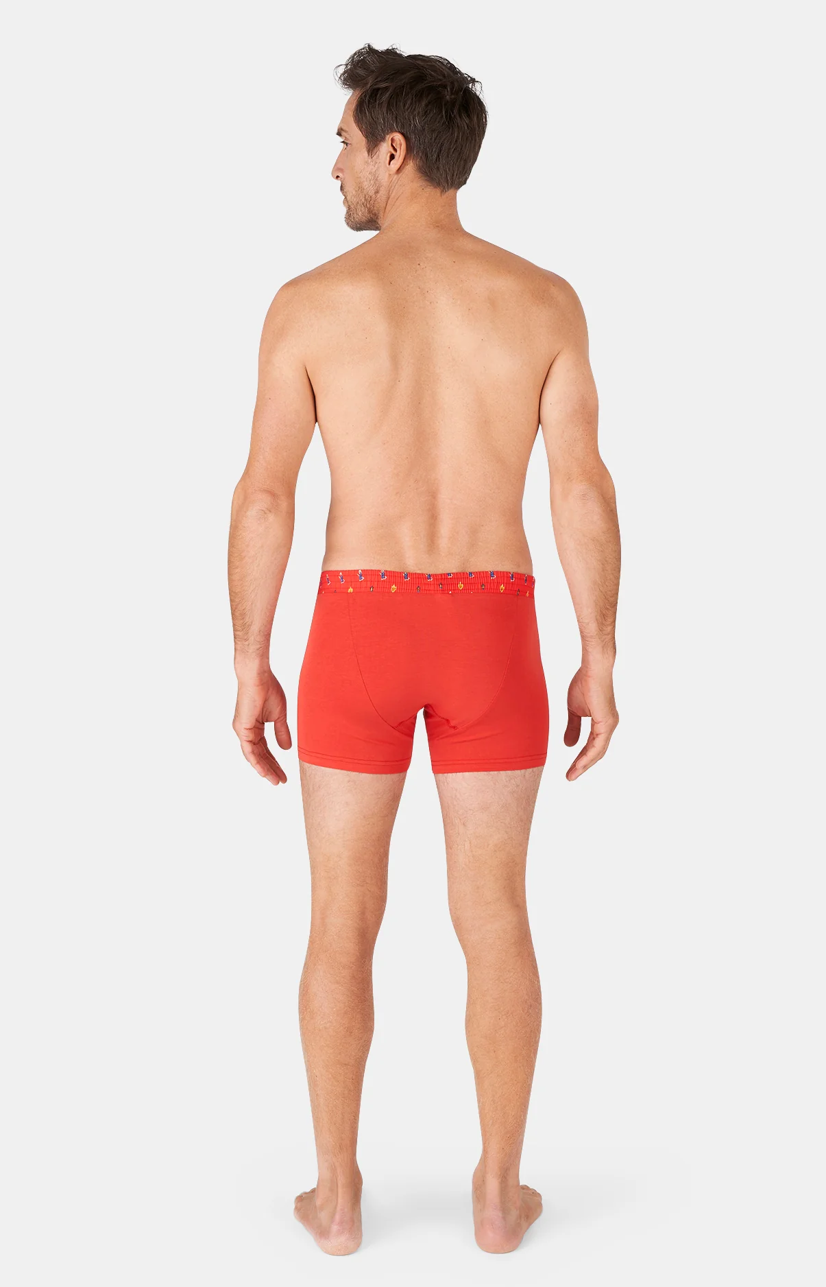 – Boxer Homme en jersey de coton – Ceinture élastiquée et braguette contrastées dans un tissu à motifs – Motif exclusif créé à Paris – Confectionné dans nos ateliers partenaires au Maroc