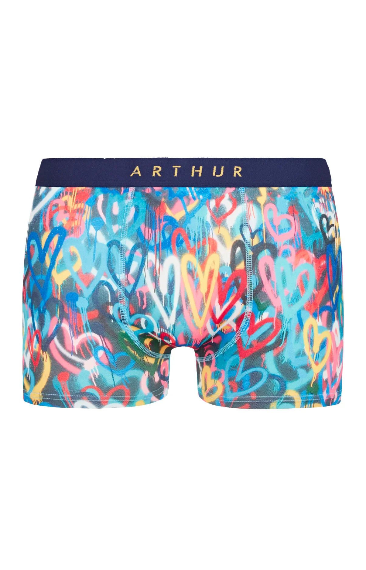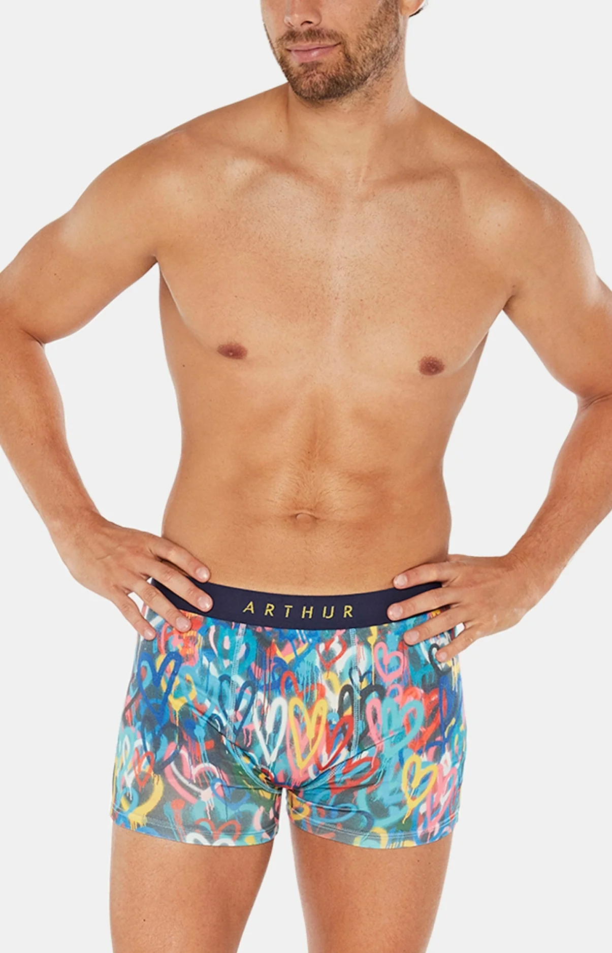Cet été, devenez un ambassadeur de l’amour et du street-art, pour un cocktail stylistique du meilleur effet. Par le contraste de sa ceinture élastiquée au maintien parfait et son graffiti osé sur le reste du sous-vêtement, ce boxer Coeur Graffiti ne passera pas inaperçu. Surtout qu’il garantit un confort idéal, contre votre peau.