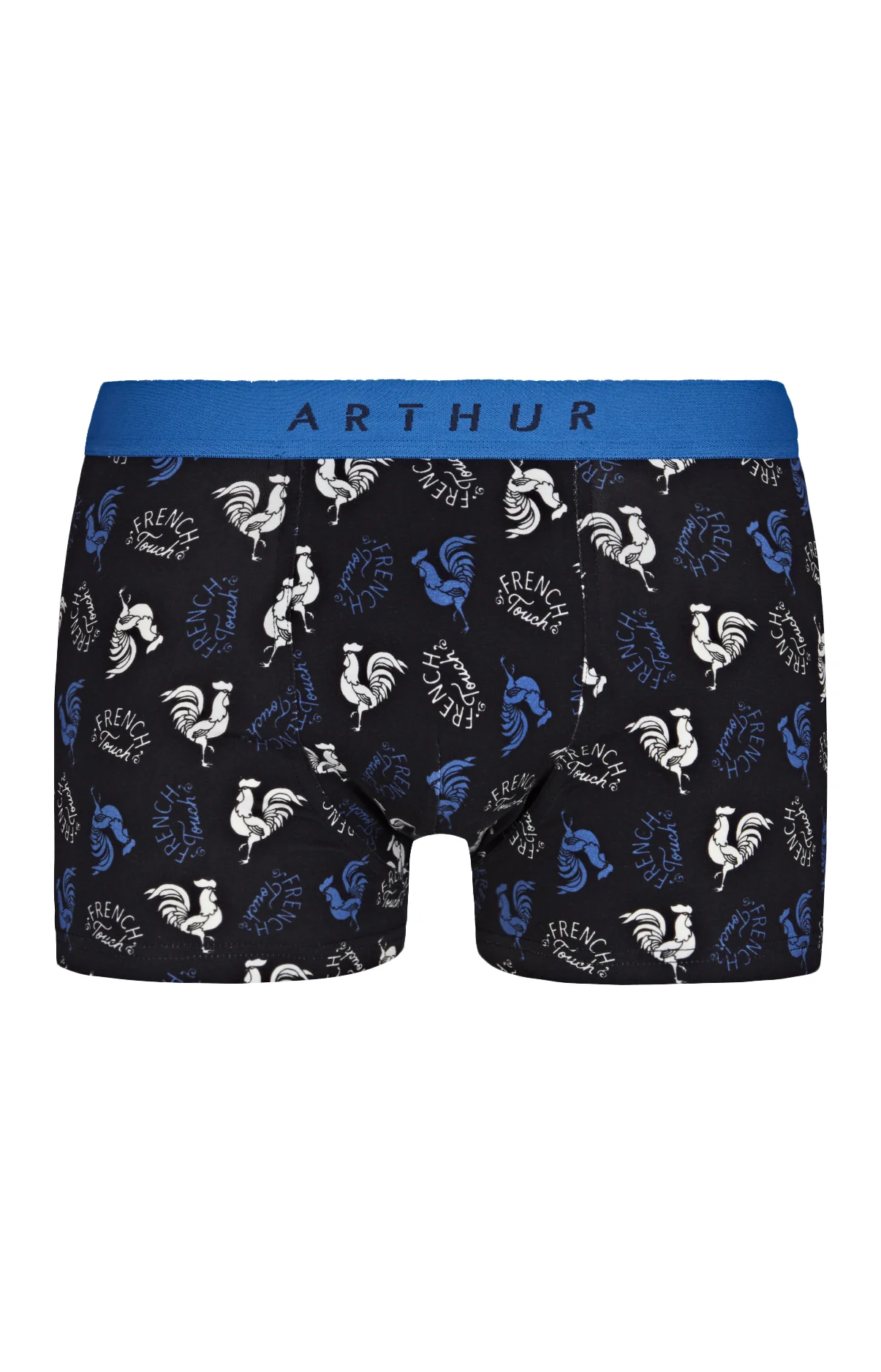 Avec ses coqs tricolores réinventés dans des teintes sombres, la French Touch fera à coup sûr de nouveaux adeptes. Cocorico au confort et à la légèreté grâce à sa composition en coton issu de l’agriculture biologique et élasthanne, il vous garantira un mainten parfait grâce à sa ceinture élastiquée siglée Arthur !