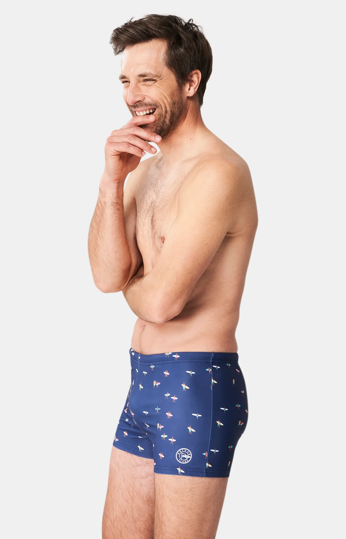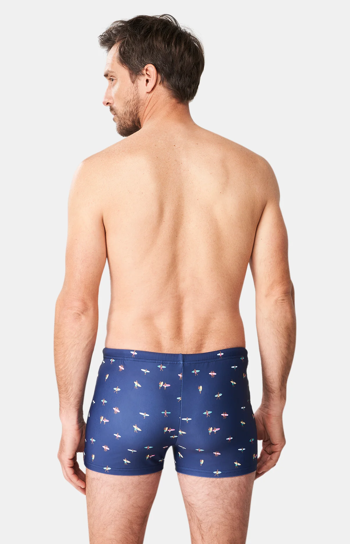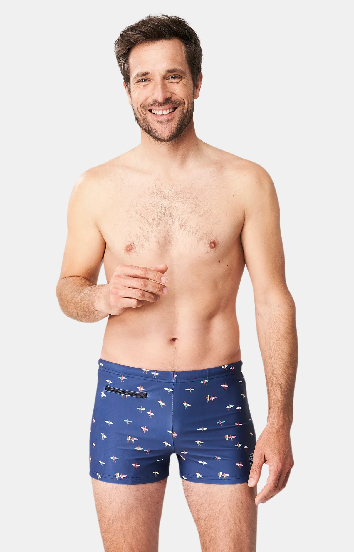 – Short de bain homme, forme boxer, nouveauté de la saison été 2024. Parfait pour faire vos longueurs hebdomadaires à la piscine ou au bord de la mer.