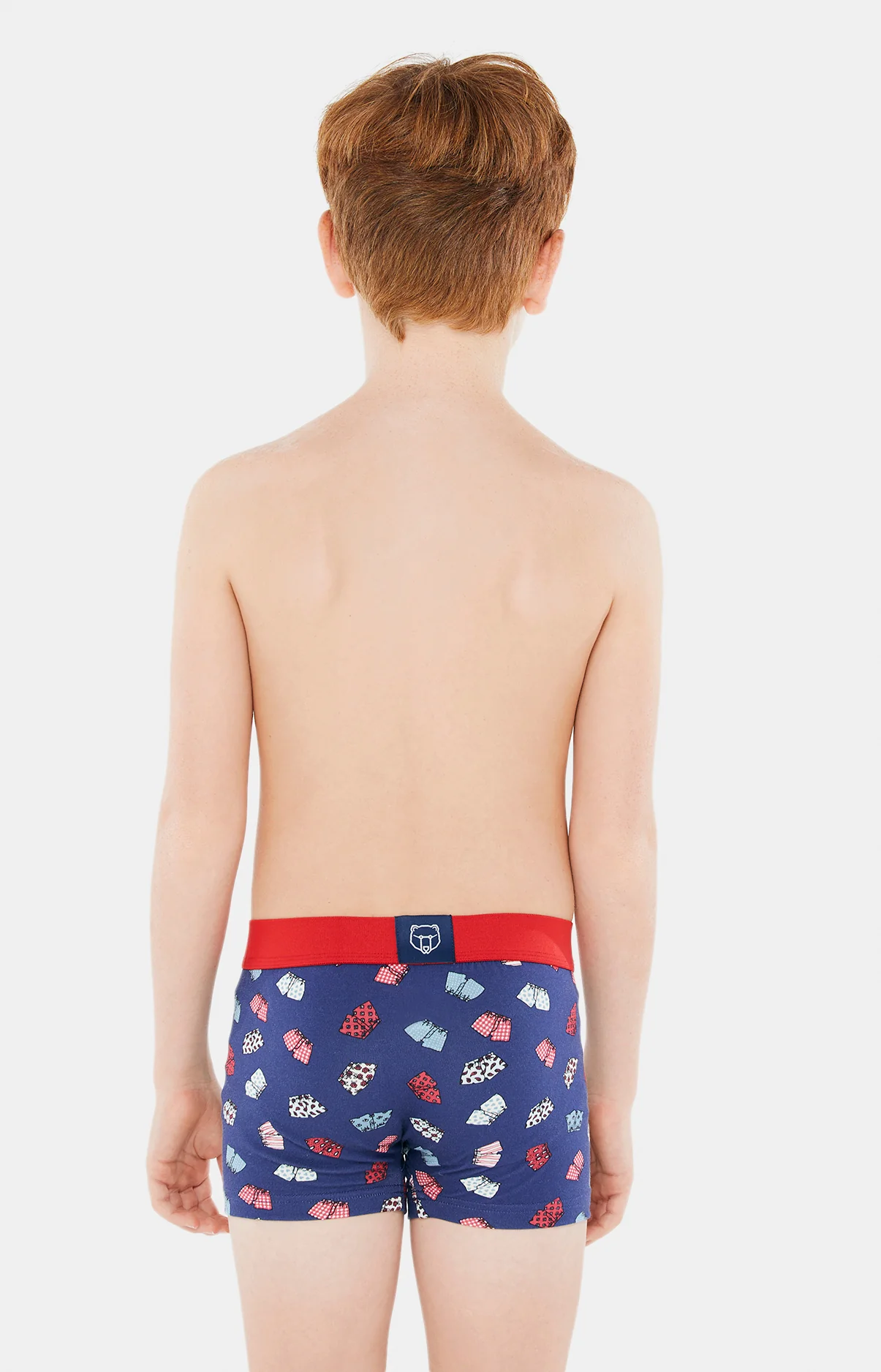 Rempli de couleurs et décalé à souhait avec son imprimé original et rempli d’humour, ce boxer enfant fait la fête du sous-vêtement. Les coutures plates anti-frottements et la bande élastiquée siglée Arthur de ce modèle en coton issu de l’agriculture biologique finissent de parfaire le portrait d’un modèle qui conduira votre enfant vers un bien-être parfait du matin au soir. Avec le sourire, bien sûr !