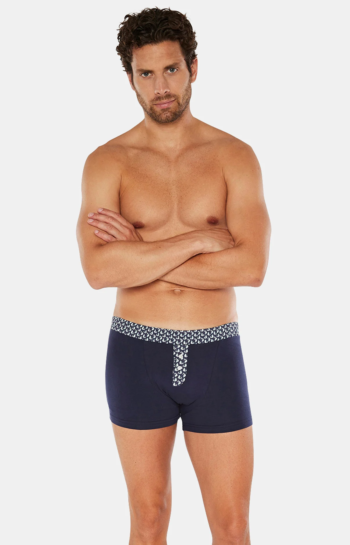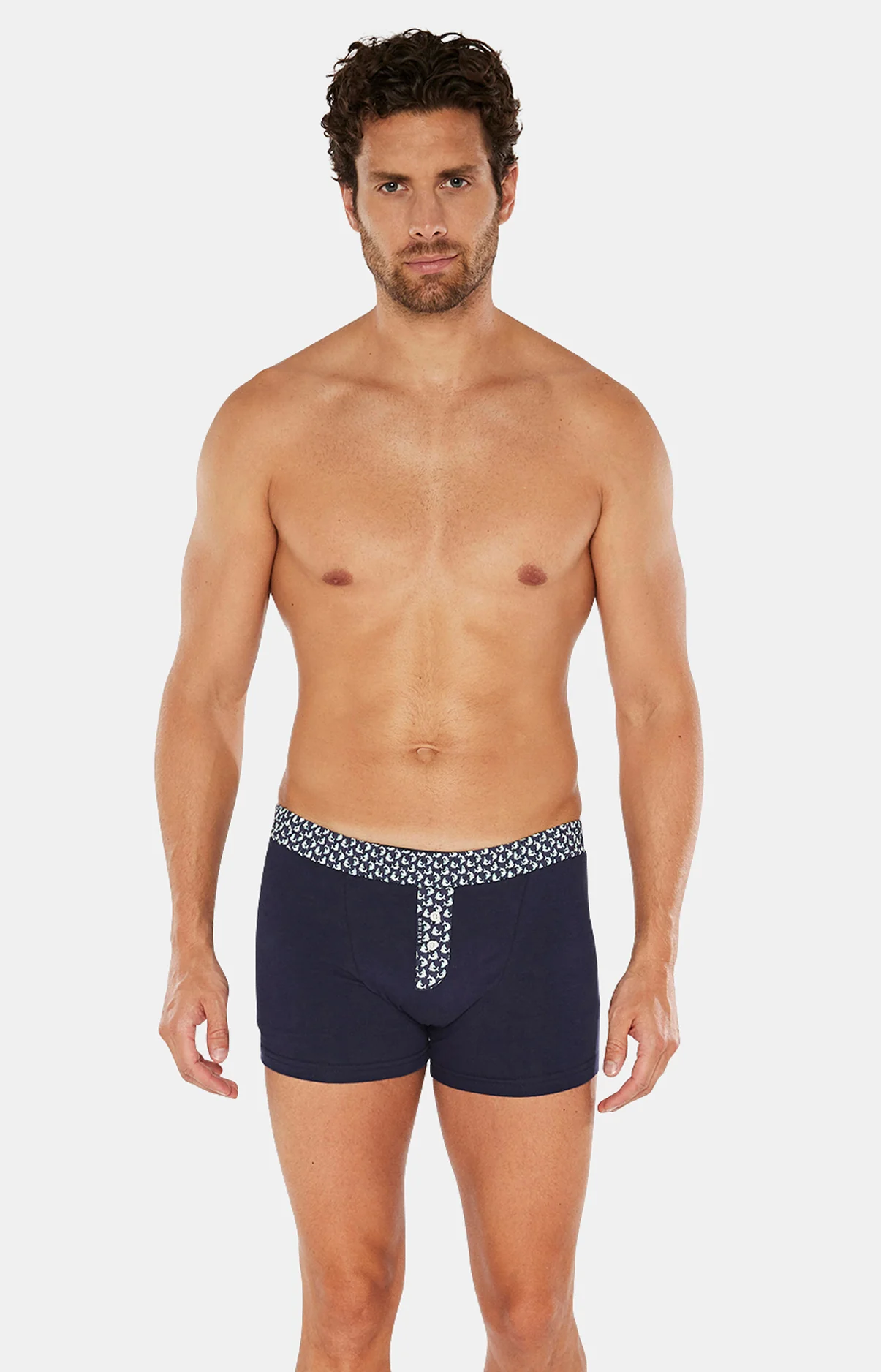Ce boxer Club en coton et élasthanne mêle la sobriété de son fond bleu marine à l’excentricité contrôlée de sa ceinture élastiquée. Histoire de faire passer un message, tout en expérimentant le confort ultime du jersey de coton et de l’élasthanne : pour vous, l’originalité discrète se porte jusque sur votre intimité, pour un quotidien sous le sceau du style. Et du bien-être, bien sûr.