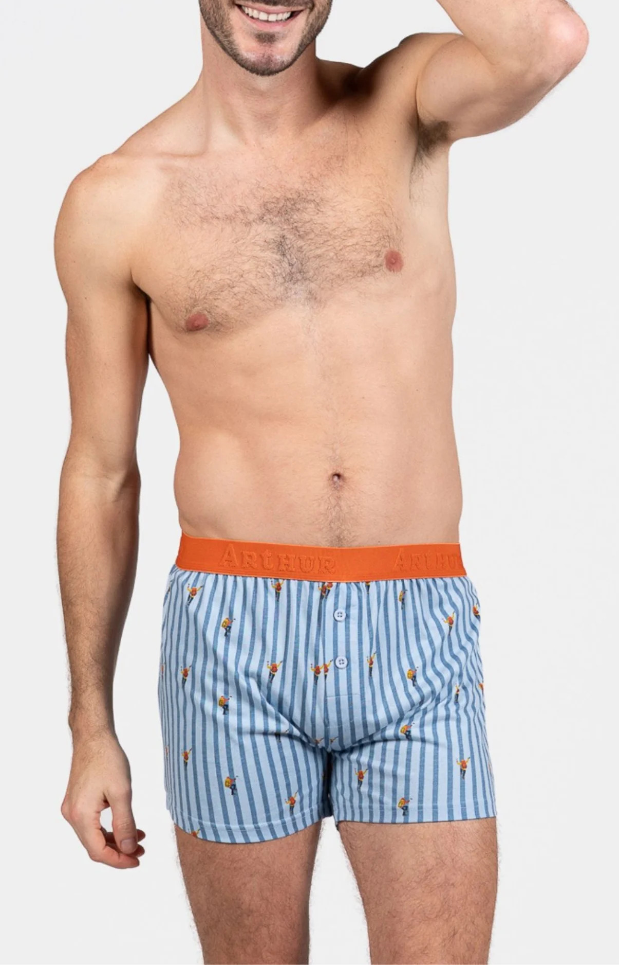 – Boxer Homme – Jersey de coton – Coutures plates pour limiter les frottements et les irritations – Bande élastiquée – Motif exclusif créé à Paris – Confectionné dans nos ateliers partenaires en Inde