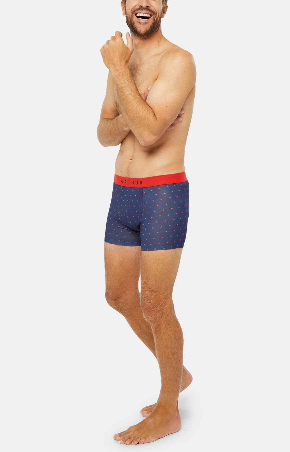 – Boxer homme en jersey de coton issu de l’agriculture biologique – Coutures plates pour limiter les frottements et les irritations – Bande élastiquée siglée ARTHUR – Motif exclusif créé à Paris – Confectionné dans nos ateliers partenaires en Turquie