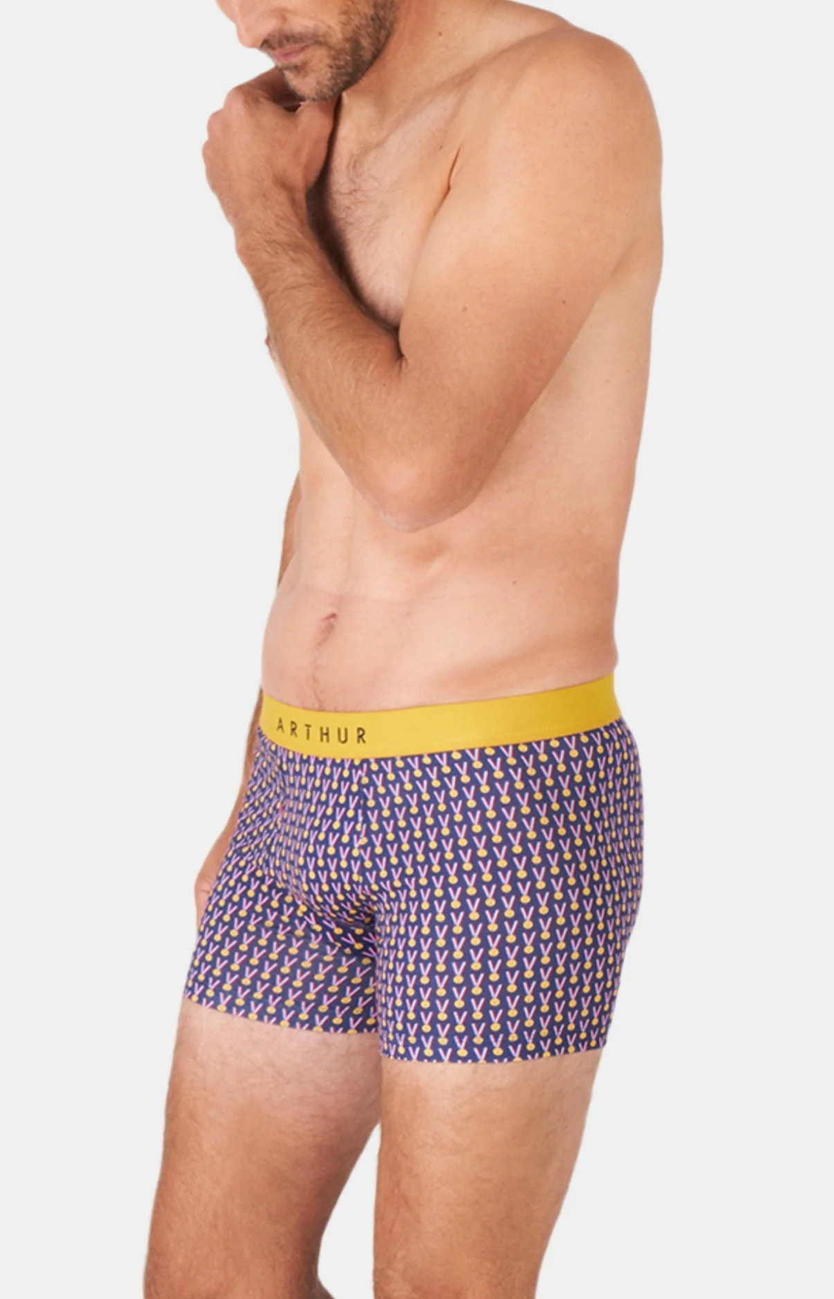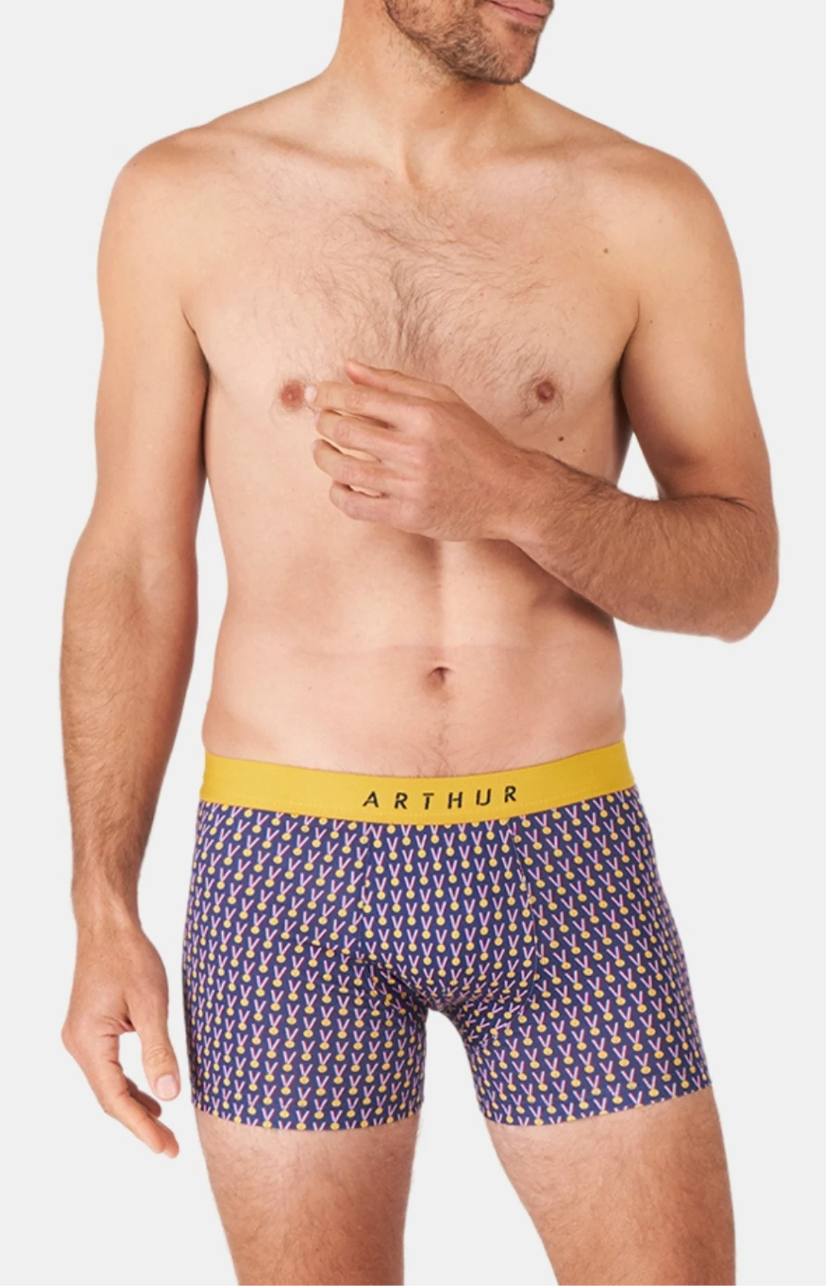 – Boxer Homme – Jersey de coton issu de l’agriculture biologique – Coutûres plates pour limiter les frottements et les irritations – Bande élastiquée siglée ARTHUR – Motif exclusif créé à Paris – Confectionné dans nos ateliers partenaires en Turquie