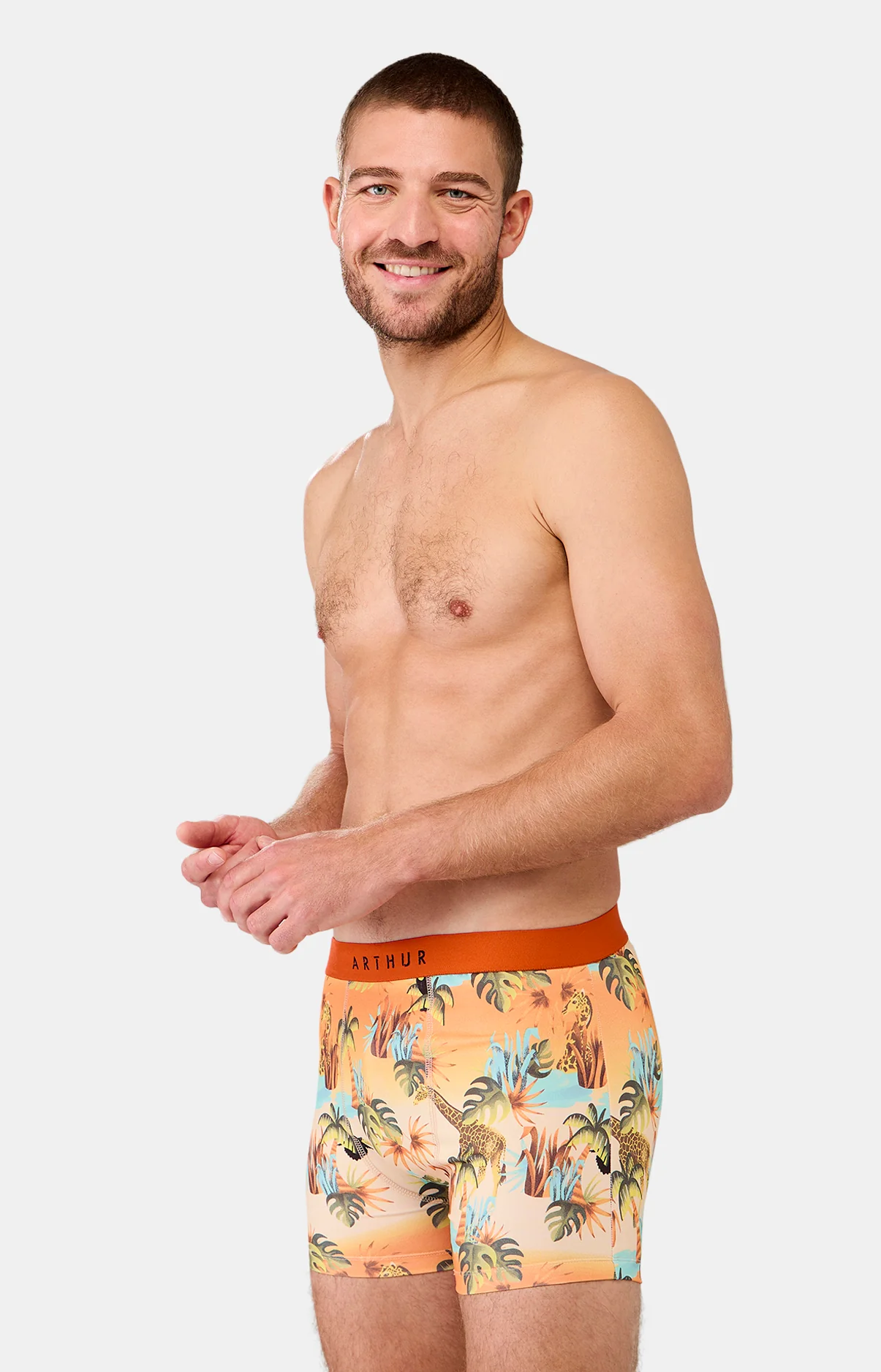 – Boxer Homme – Maille microfibre très douce, particulièrement adaptée pour la pratique d’activités sportives – Coutures plates pour limiter les frottements et les irritations – Bande élastiquée siglée ARTHUR – Motif exclusif créé à Paris – Confectionné dans nos ateliers partenaires en Turquie