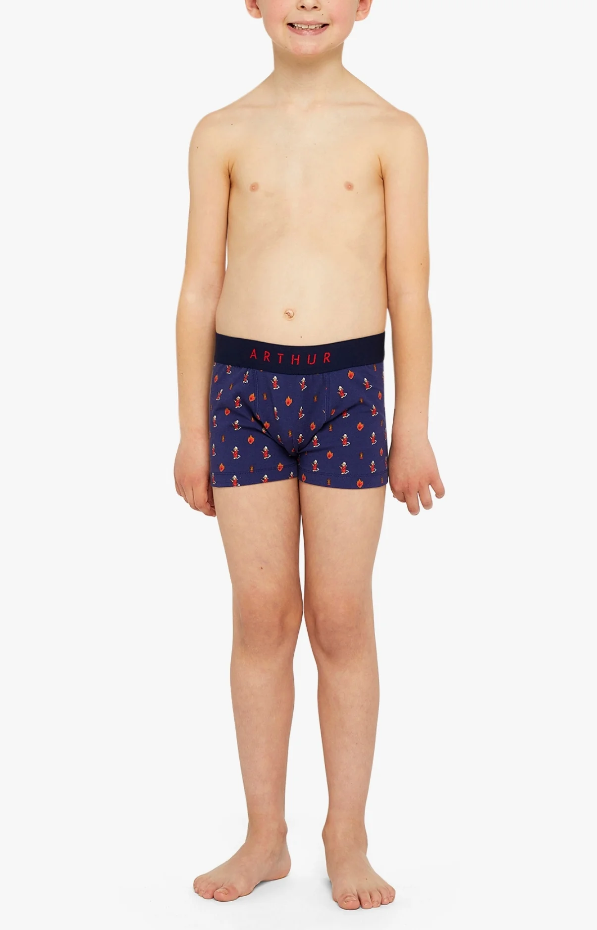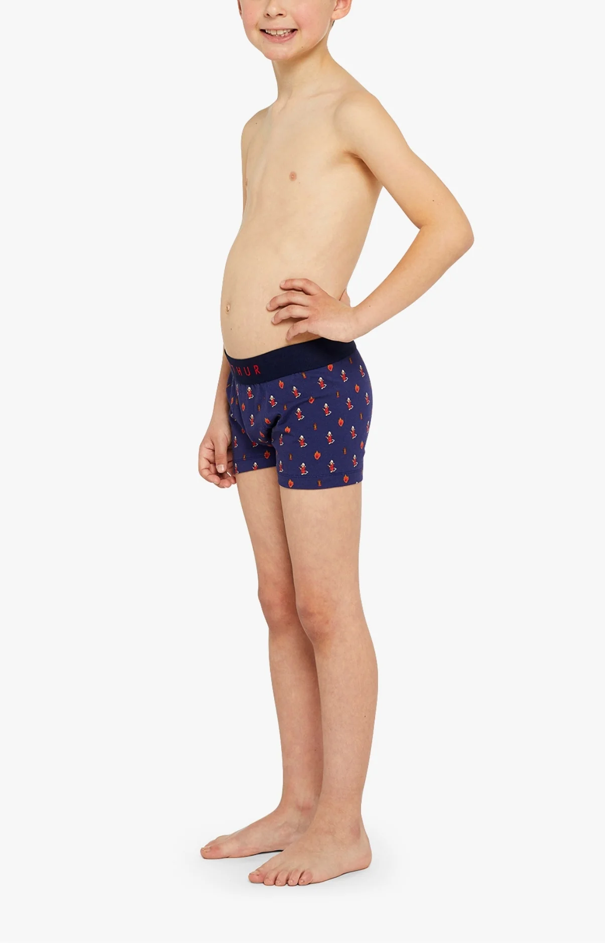 – Boxer enfant – Coton issu de l’agriculture biologique – Coutures plates pour limiter les frottements et les irritations – Bande élastiquée siglée ARTHUR – Motif créé à Paris – Confectionné dans nos ateliers partenaires en Turquie