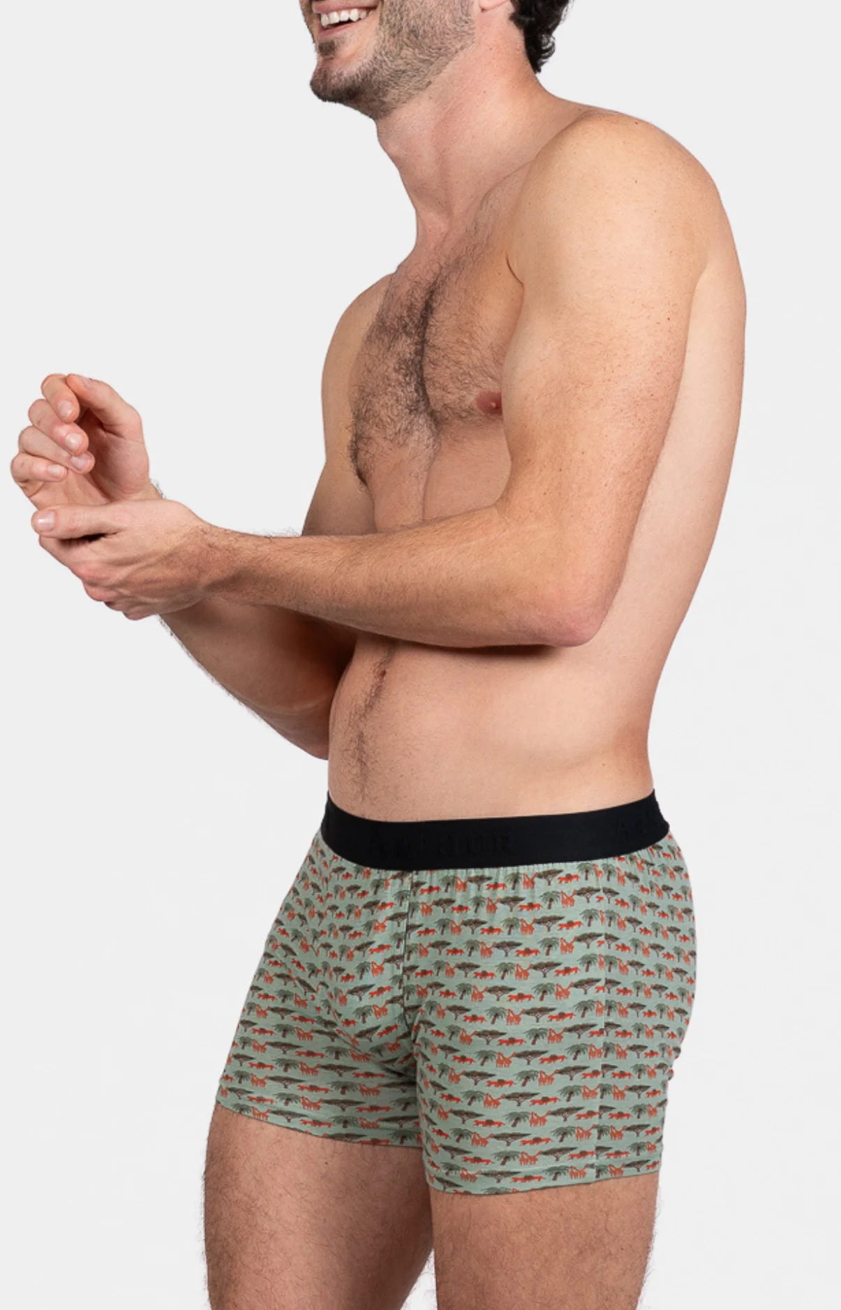 – Boxer Homme – Jersey de coton – Coutures plaques pour limiter les frottements et les irritations – Bande élastiquée – Motif exclusif créé à Paris – Confectionné dans nos ateliers partenaires en Inde
