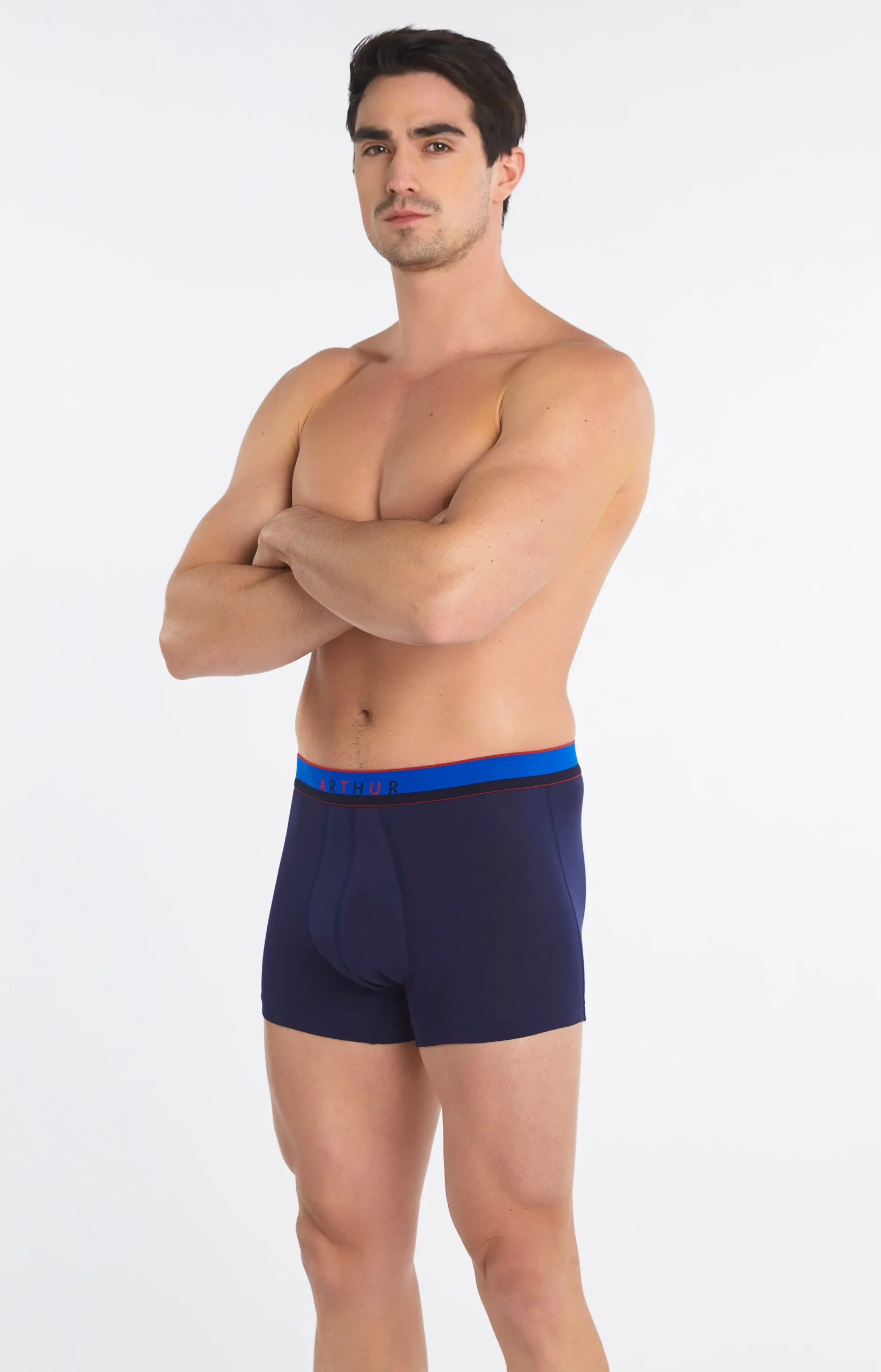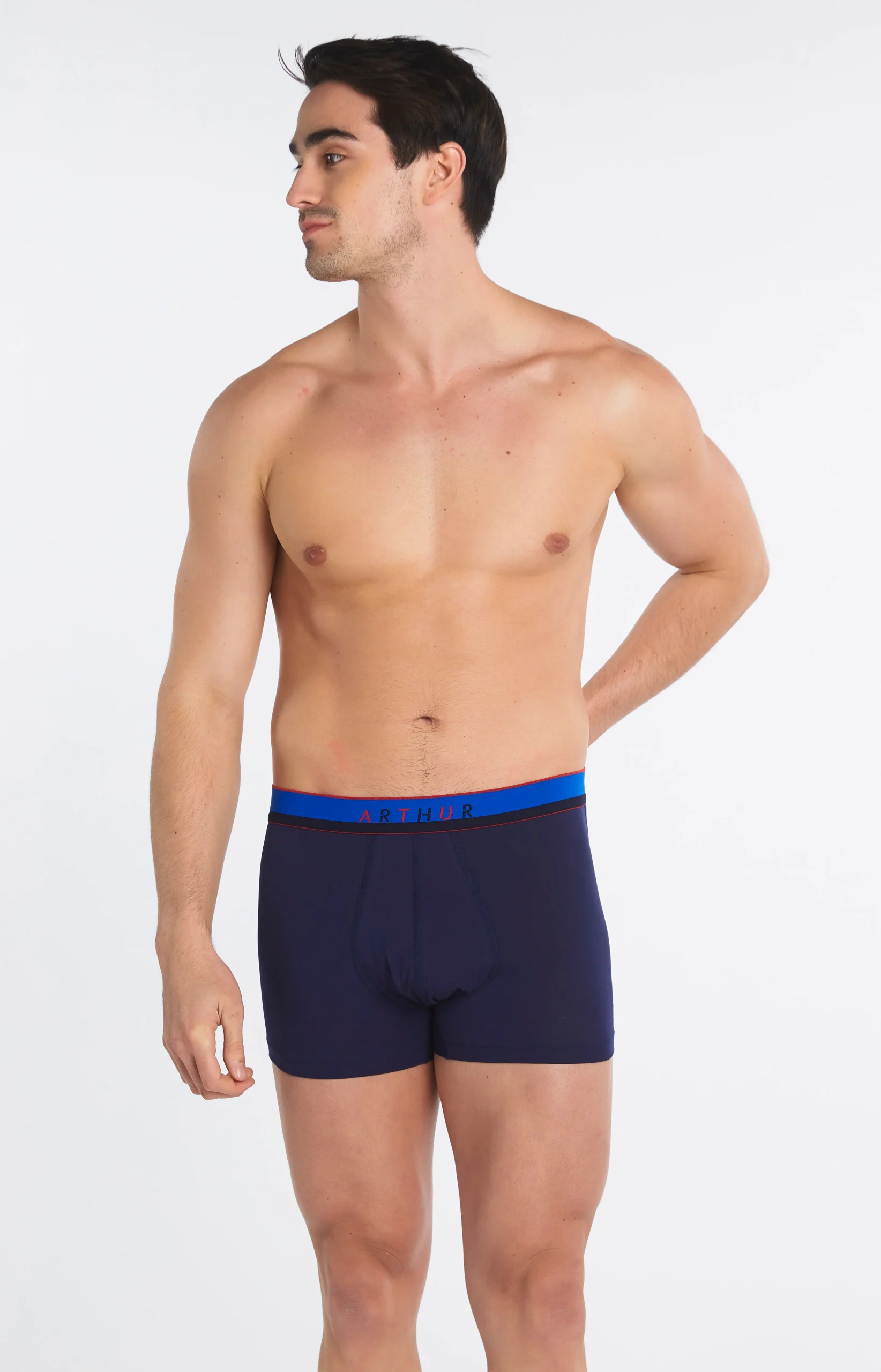 Cousins modernes du caleçon Club, les nouveaux boxers Arthur adaptent la suspension originale du modèle icônique à l’époque et à la tendance ! Avec son filet anti-frottement, ce modèle bleu nuit en coton issu de l’agriculture biologique et élasthanne garantit un confort maximal en toutes situations, le tout dans un style sobre et discret.