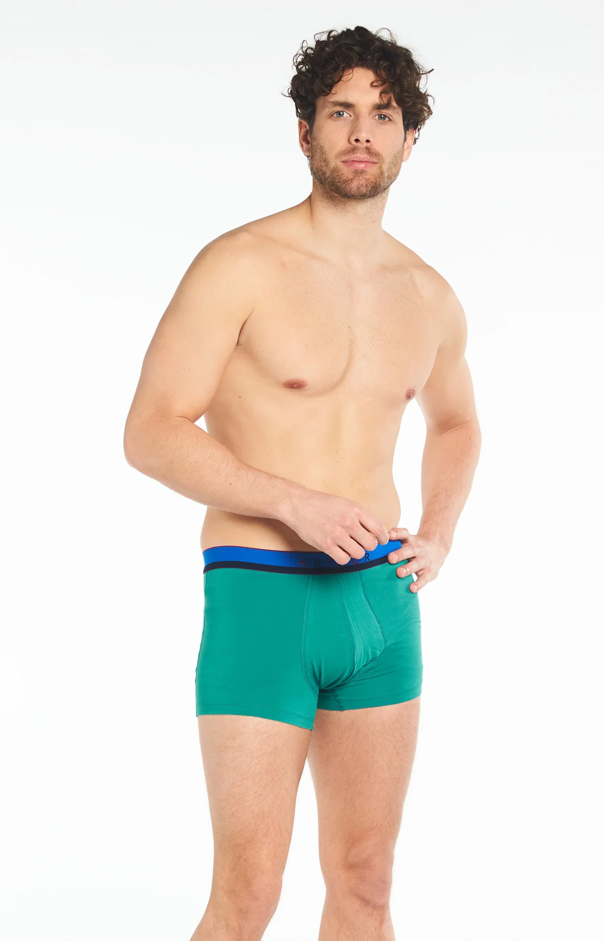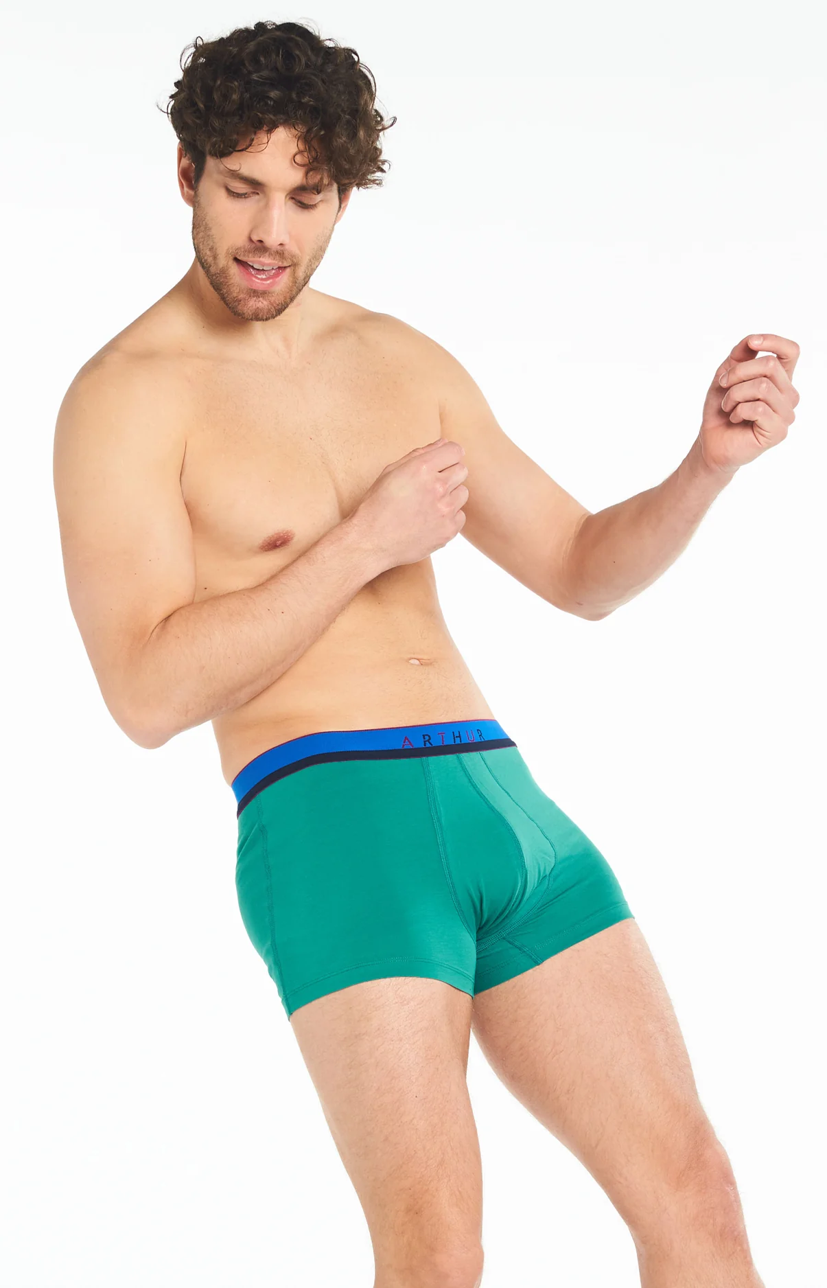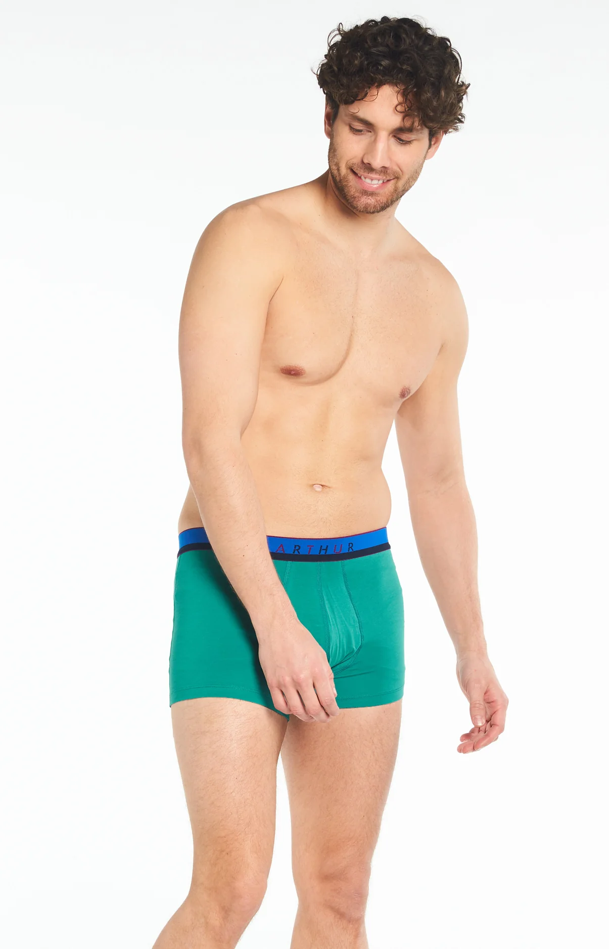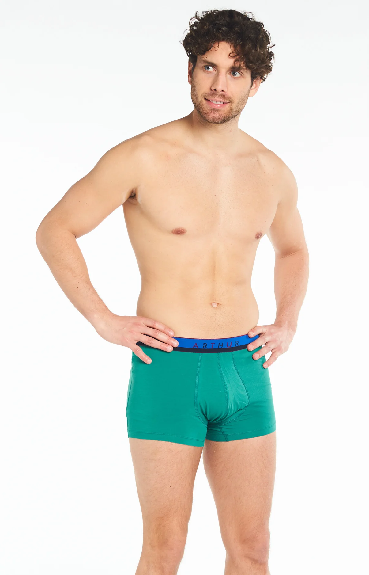 Cousins modernes du caleçon Club, les nouveaux boxers Arthur adaptent la suspension originale du modèle icônique à l’époque et à la tendance ! Avec son filet anti-frottement, ce modèle à l’habile vert dominant et à la griffe Arthur, tout en coton issu de l’agriculture biologique et élasthanne, constitue la garantie d’un confort maximal de tous les insants, le tout dans un style sobre et discret.