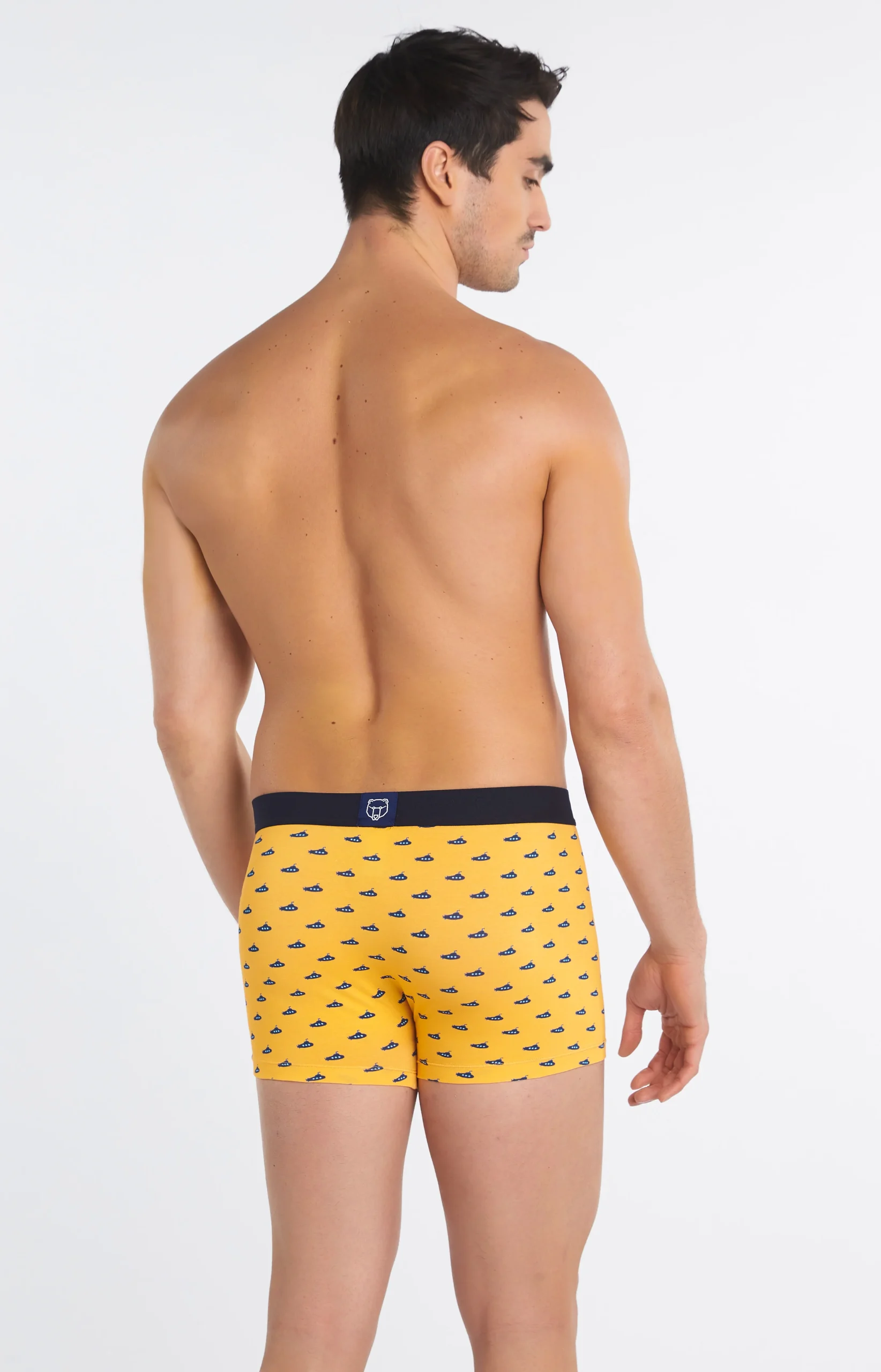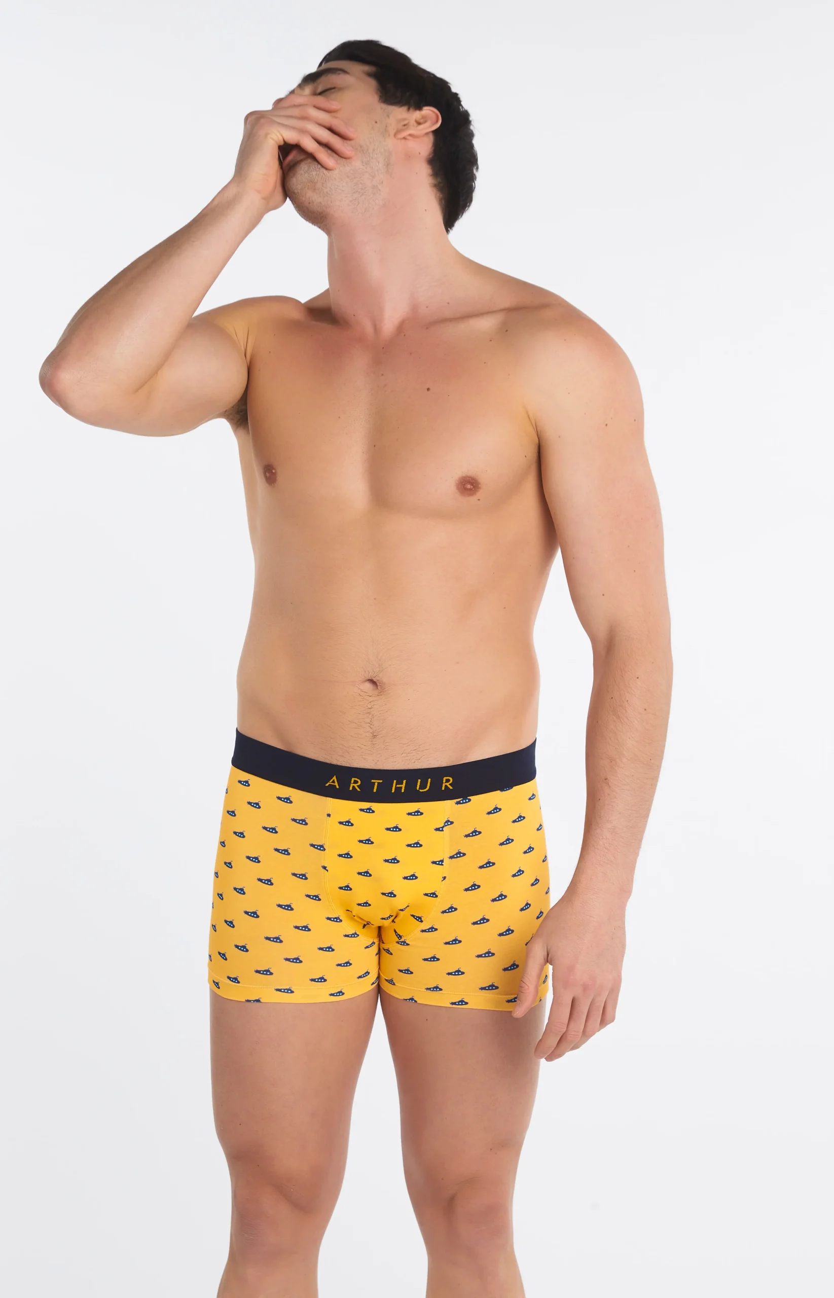 Savant mélange de rétro hommage à quatre garçons dans le vent et de modernité par son mélange de couleurs contrastées, ce boxer en coton issu de l’agriculture biologique et élasthanne est à la fois élégant et décalé. Sa ceinture élastiquée siglée Arthur et son empiècement sur le devant lui apportent, en plus, tout le bien-être d’un confort contre votre peau.
