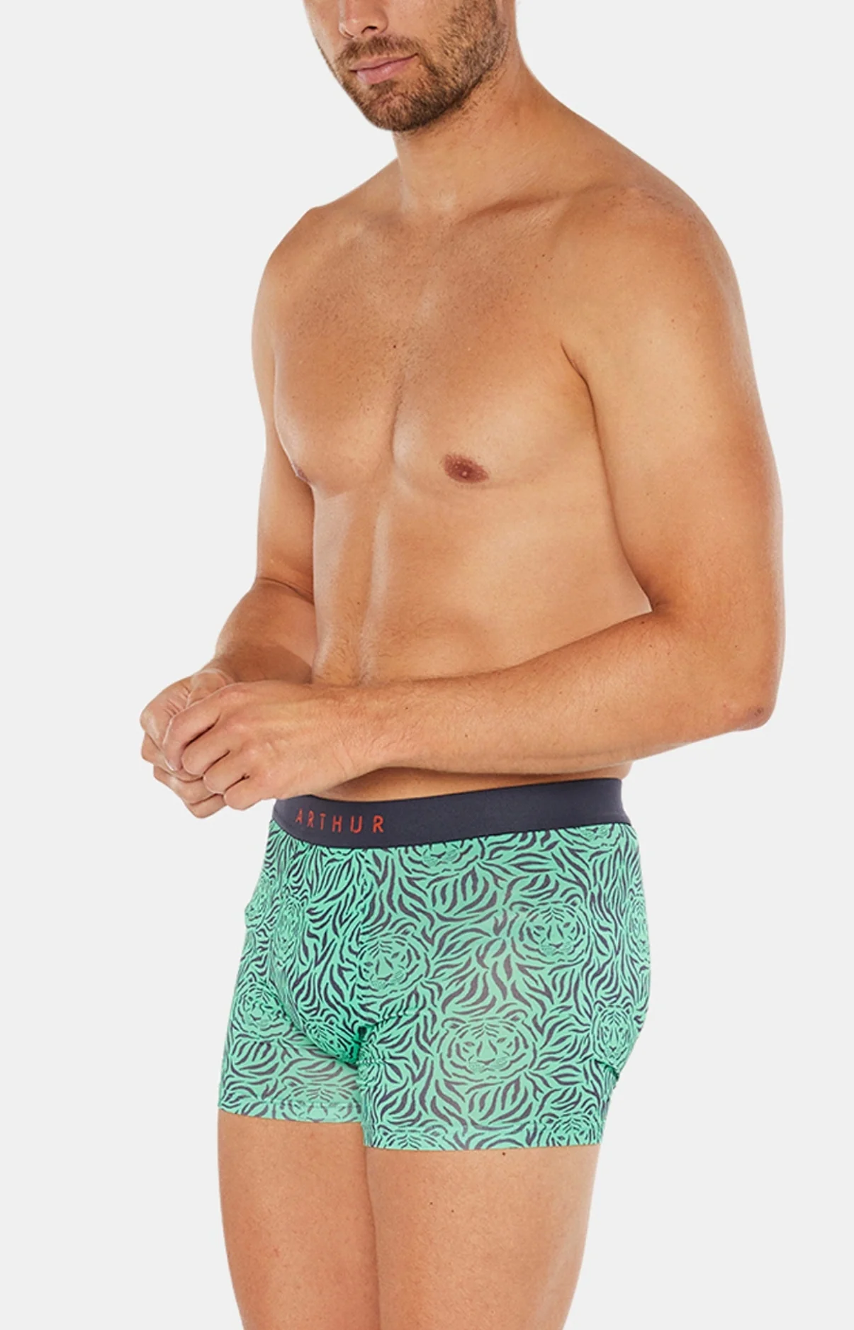 Jetez-vous dans la jungle du quotidien en étant paré du meilleur outil : ce boxer homme en coton issu de l’agriculture biologique et élasthanne va laisser s’échapper le félin qui sommeille en vous, grâce à un motif audacieux imaginé par notre équipe de style parisienne, et les promesses de confort qui vont avec. Grrrrrrr, sortez les griffes et osez l’originalité estivale Arthur !