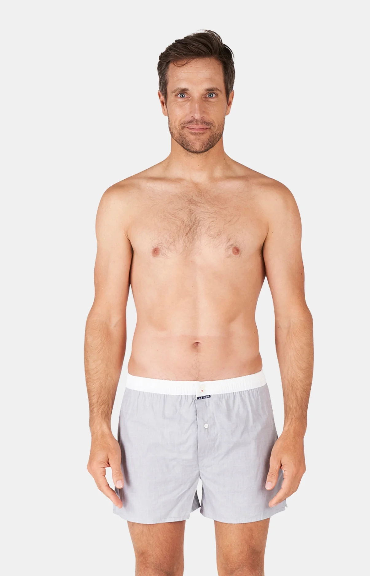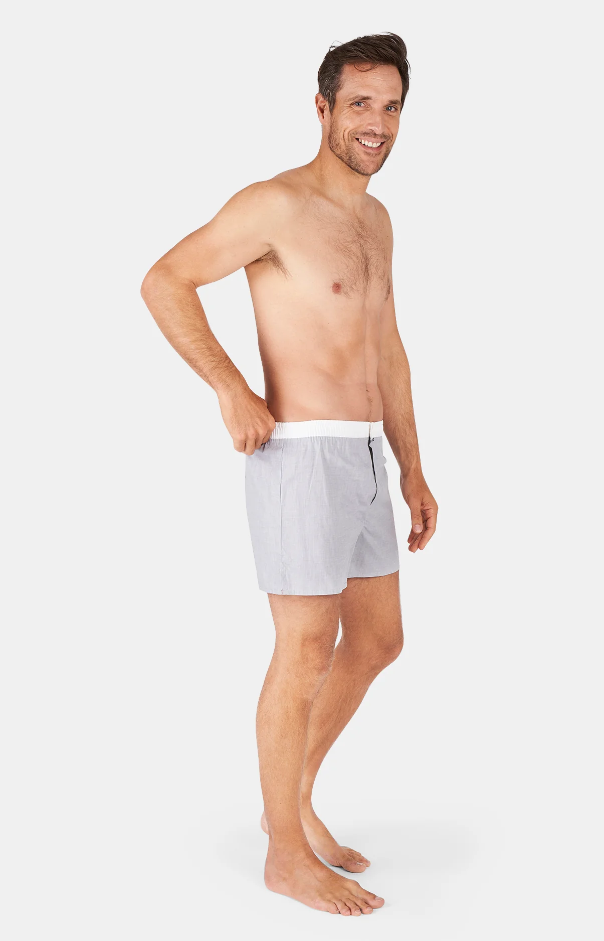 – Caleçon de coupe américaine– Empiècement central au dos en forme de U qui évite les frottements– Ceinture élastiquée et contrastée avec 2 boutons– Braguette fermée par un bouton– Fentes d’aisance côtés– Modèle créé à Paris– Tissu origine Portugal– Confectionné dans nos ateliers partenaires au Maroc
