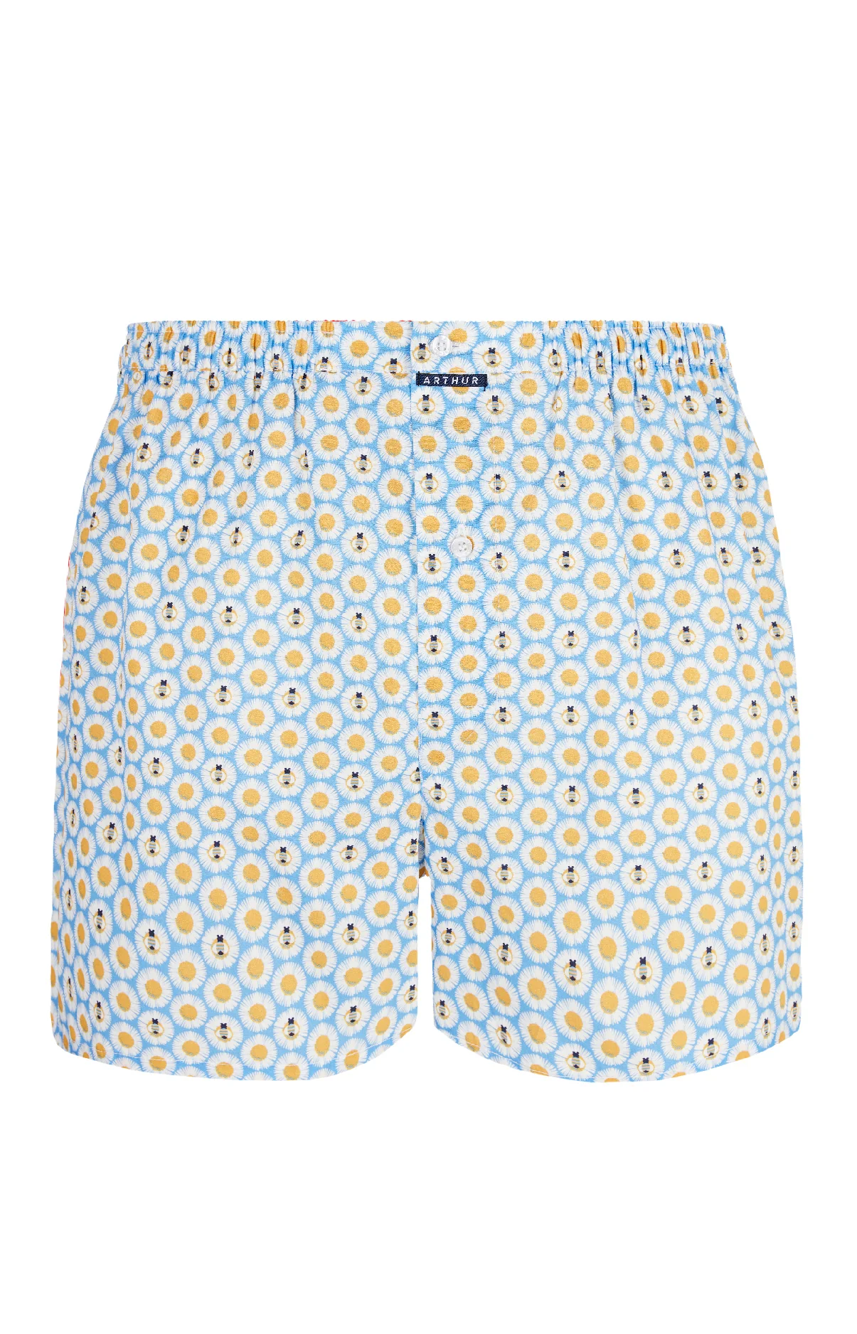 Vous souhaitez faire le buzz ? Arthur a le caleçon qu’il vous faut ! Principaux atouts de ce modèle 100% coton issu de l’agriculture biologique, sa coupe française stretch et sa ceinture élastiquée à un bouton vous apporteront un confort et une liberté de mouvement à toute épreuve. Et pour allier l’agréable au style, son imprimé décalé, composé de pâquerettes et de petites abeilles sur un fond bleu ciel, trouvera parfaitement sa place dans la liste de vos sous-vêtements favoris.