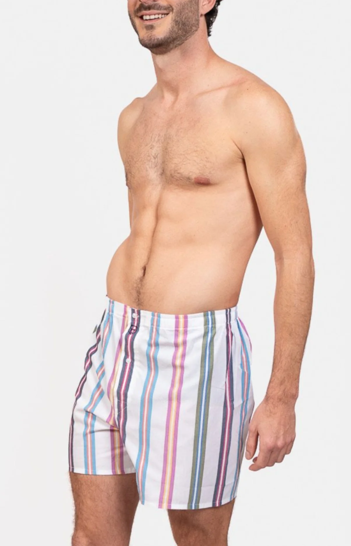 – Caleçon homme de coupe française – 100% coton – Couture plate milieu dos – Ceinture élastiquée avec un bouton – Braguette fermée par un bouton – Motif exclusif créé à Paris – Confectionné dans nos ateliers partenaires au Maroc