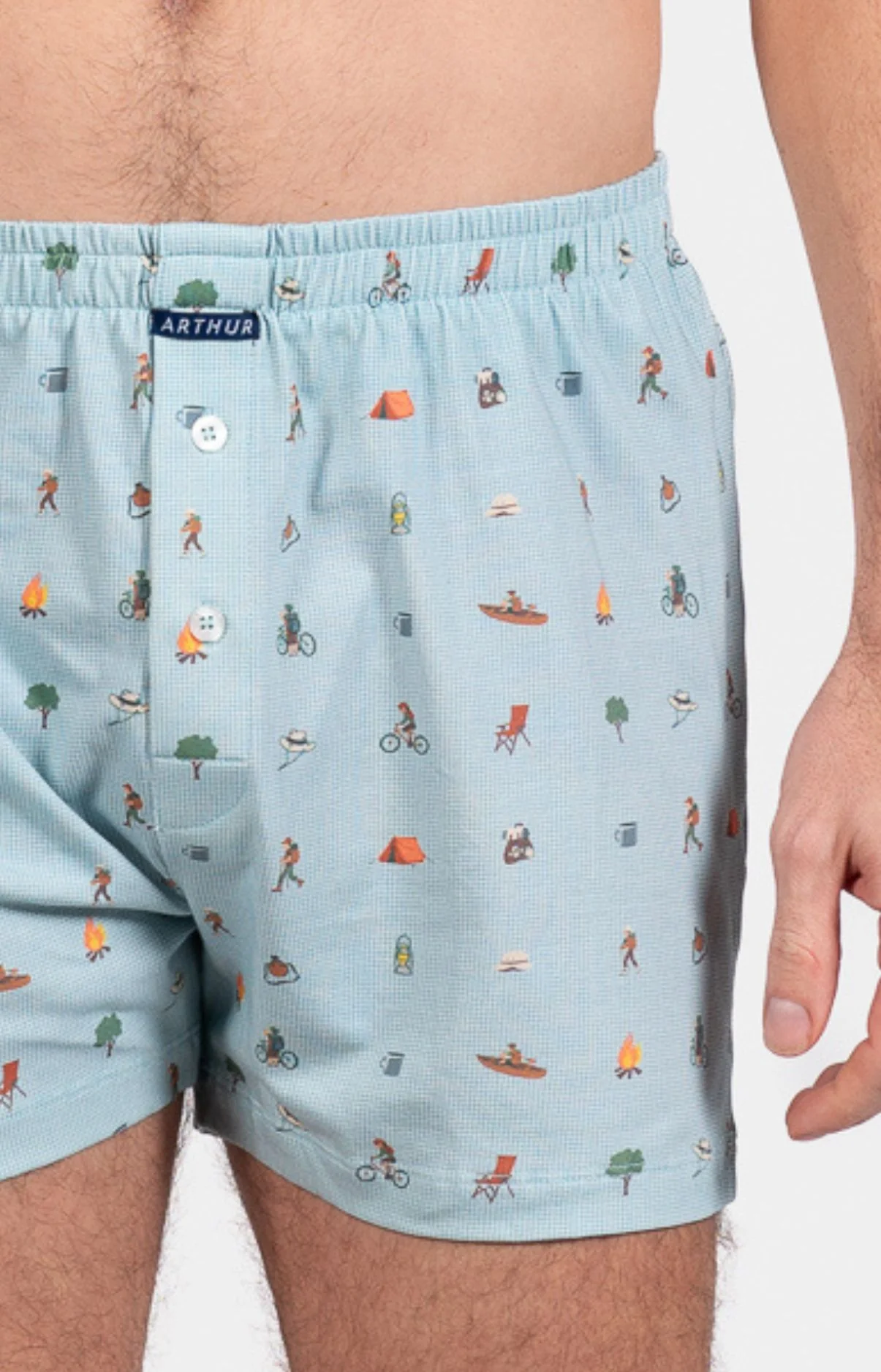 Notre Caleçon homme en jersey de coton doux à porter de nuit, comme de jour ! – Coton issu de l’agriculture biologique – Ceinture élastiquée et braguette 2 boutons – Motif exclusif créé à Paris – Confectionné dans nos ateliers partenaires en Turquie