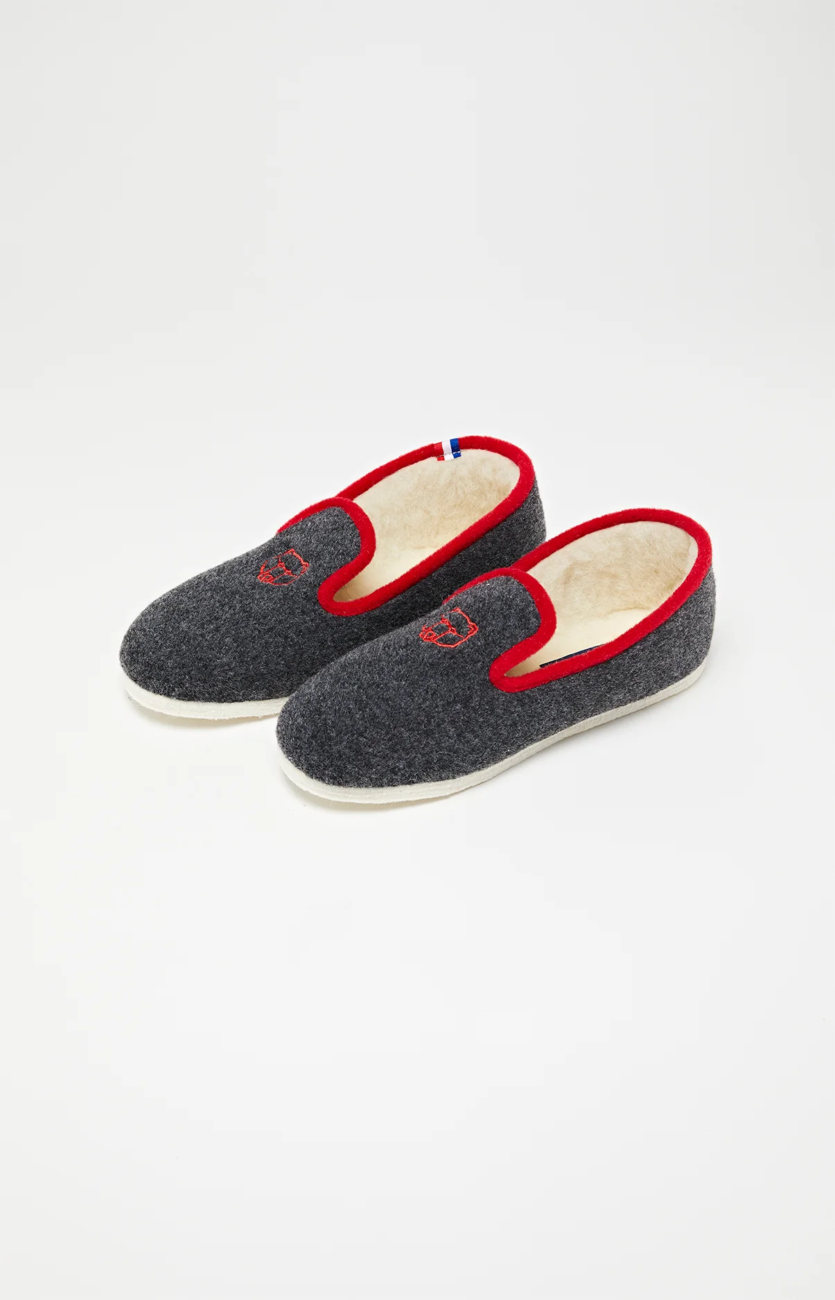 Hommage à la simplicité et au confort parfait, ces charentaises en laine grises, imaginées et fabriquées en France, seront des compagnons de la meilleure facture pour un hiver au chaud sur toute la ligne.