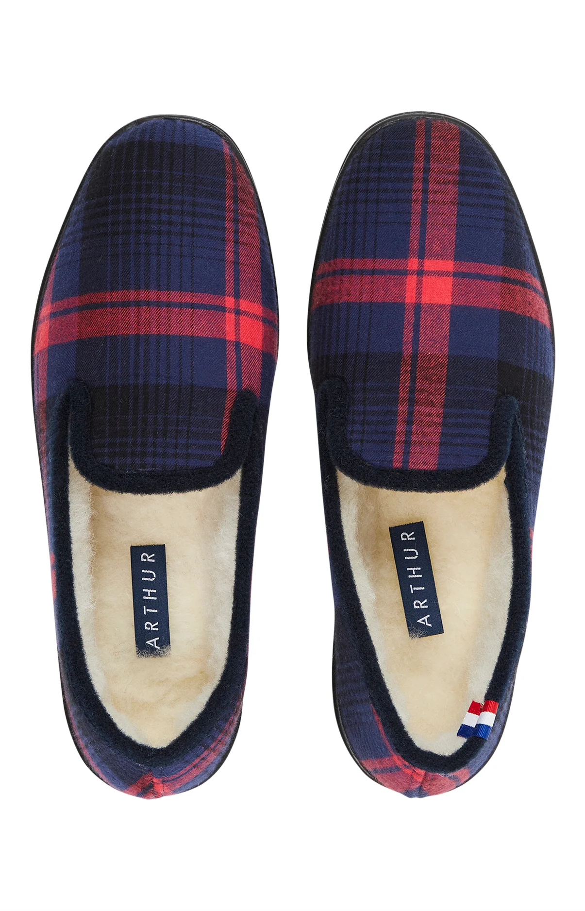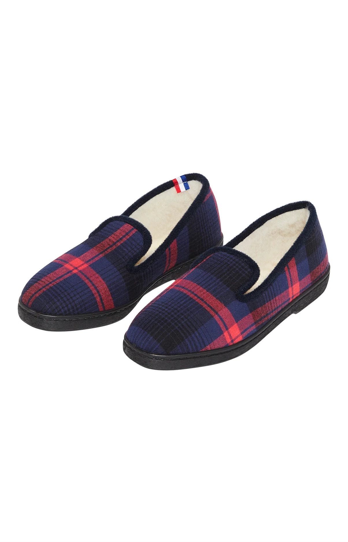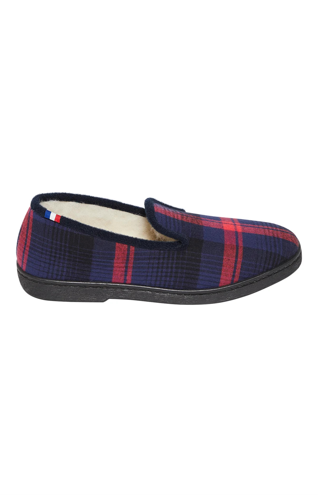 Le style ARTHUR pour garder vos pieds au chaud à la maison – Charentaises homme – Dessus carreaux écossais en coton gratté – Galon contrasté – Doublure intérieure en laine – Semelle injectée antidérapante – Motif exclusif créé à Paris – Fabriquées en France