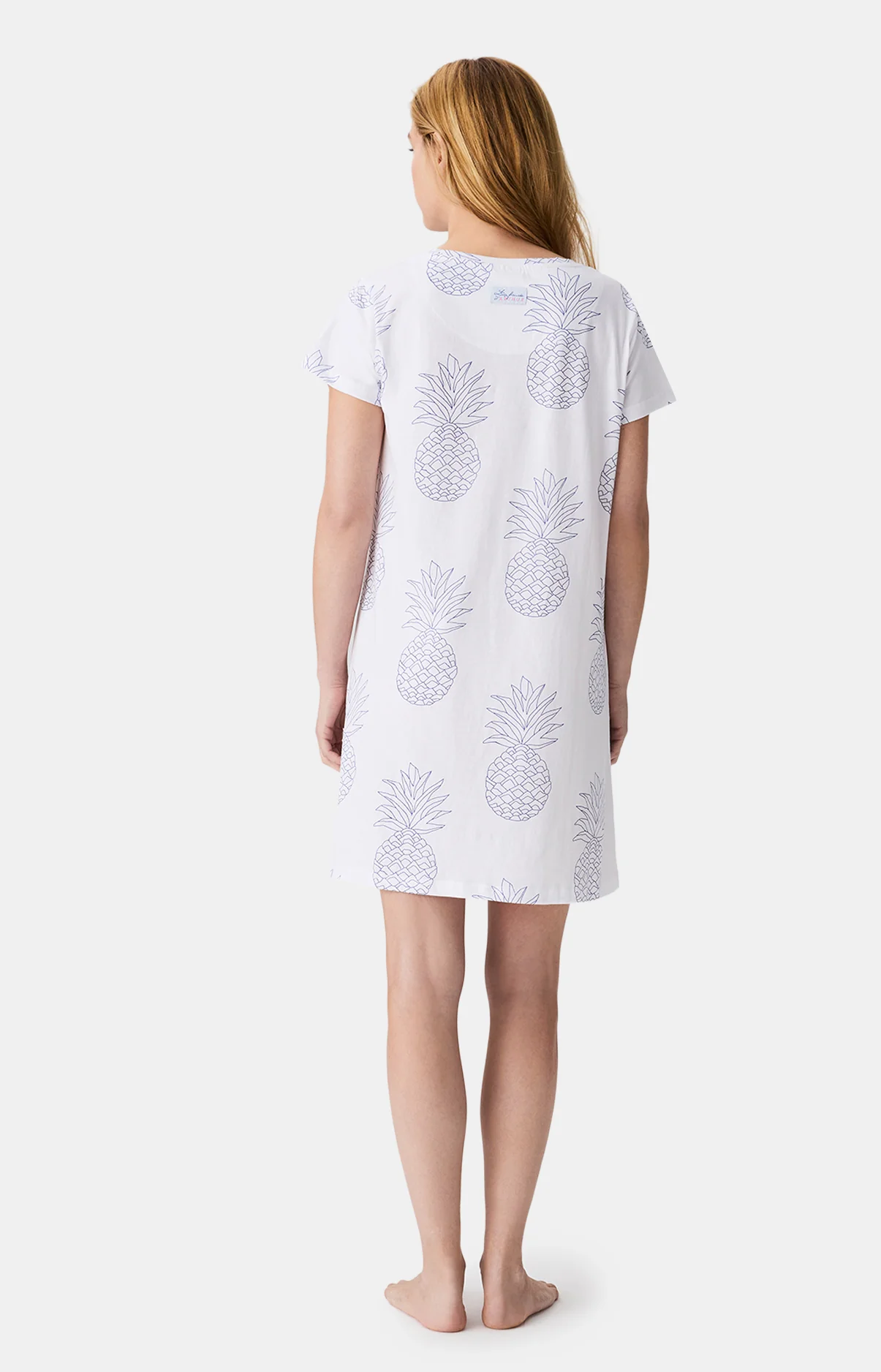 – Chemise de nuit Femme – 100% coton issu de l’agriculture biologique – Grand col rond, manches courtes – Longueur environ 90 cm – Motif exclusif créé à Paris – Confectionnée dans nos ateliers partenaires en Inde