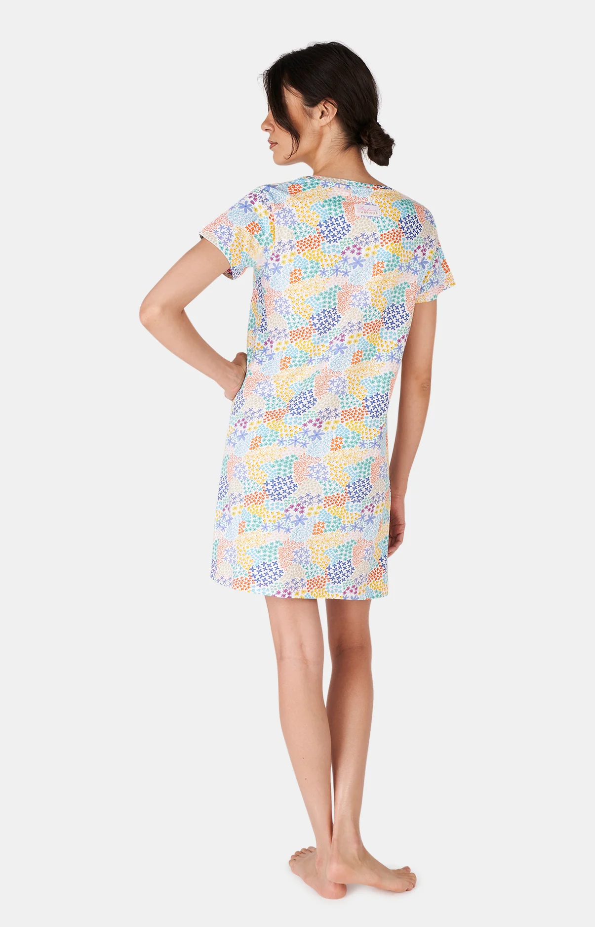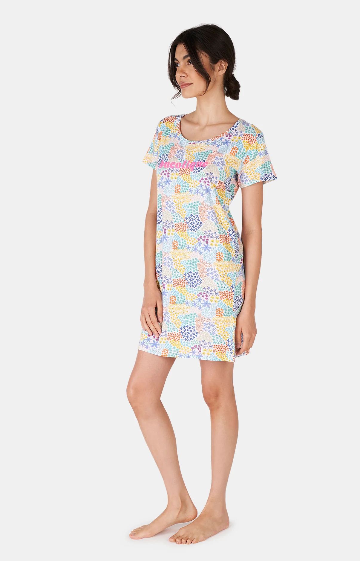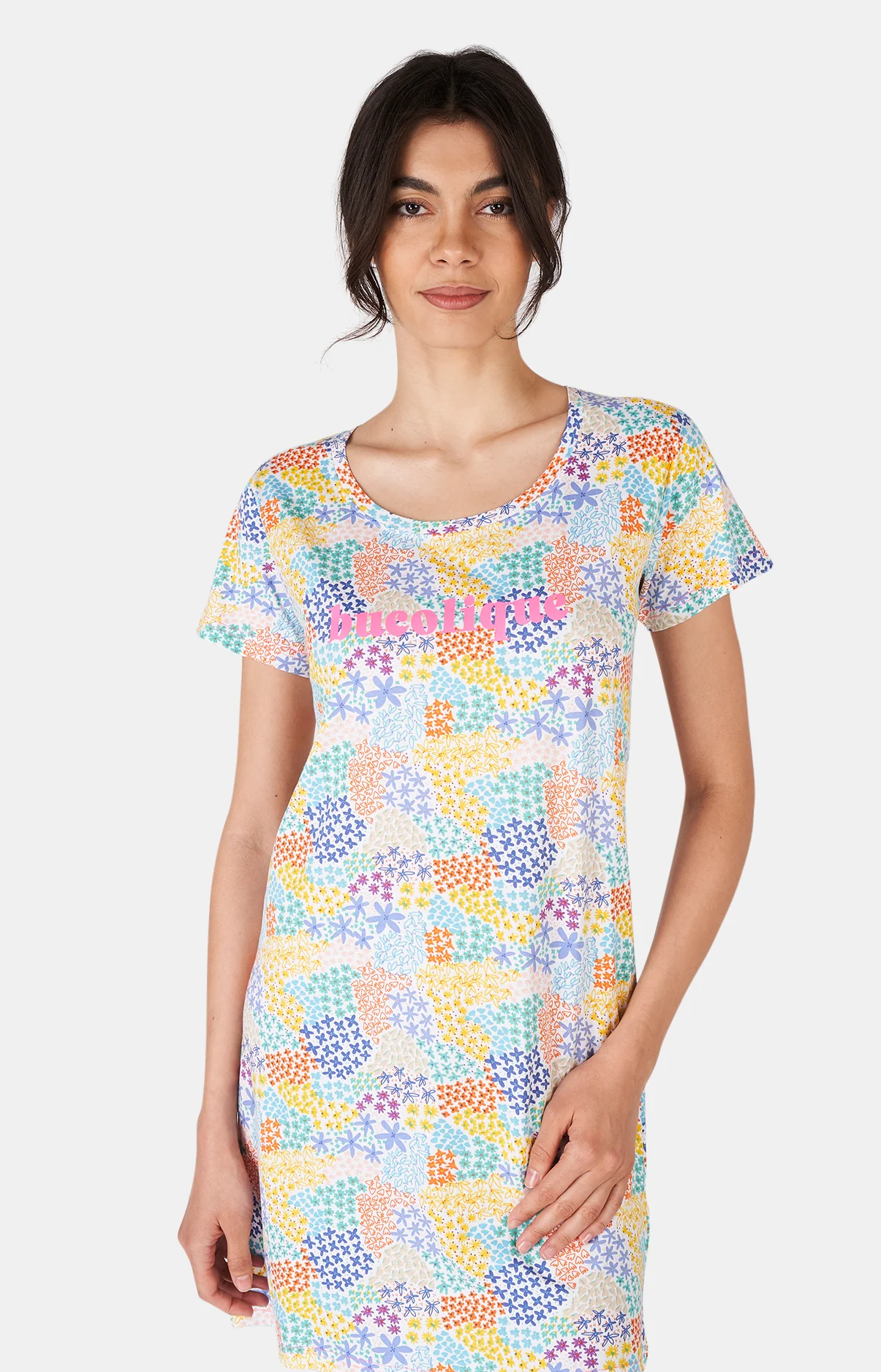 – Chemise de nuit Femme – 100% coton issu de l’agriculture biologique – Grand col rond, manches courtes – Sérigrahie poitrine – Longueur environ 90 cm – Motif exclusif créé à Paris – Confectionnéé dans nos ateliers partenaires en Inde