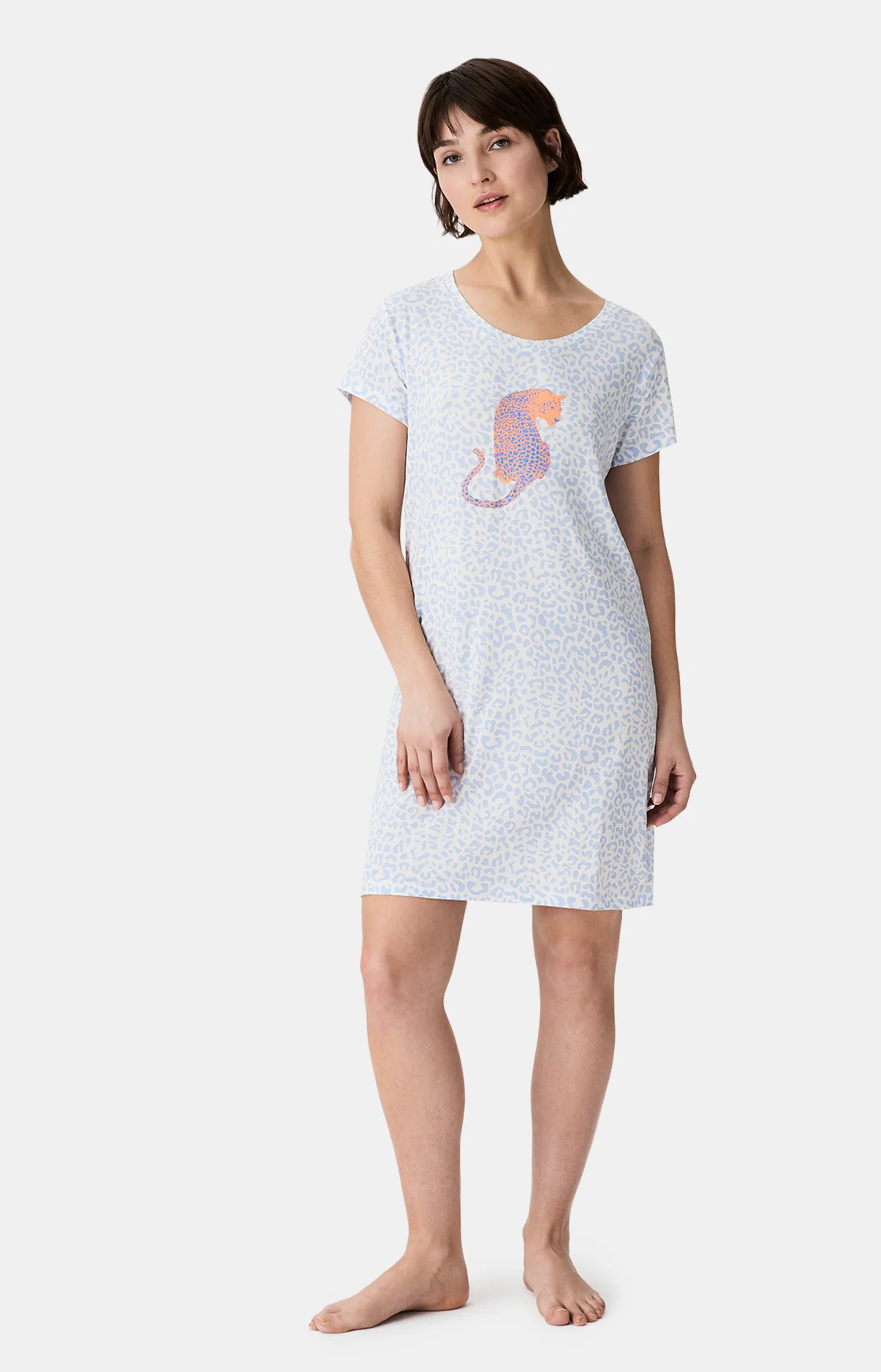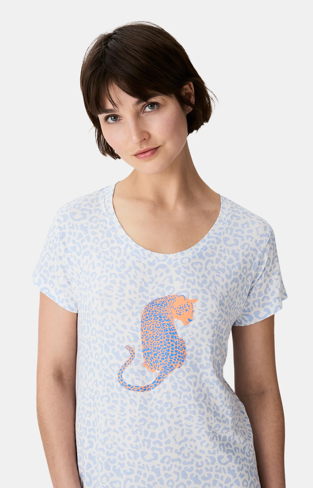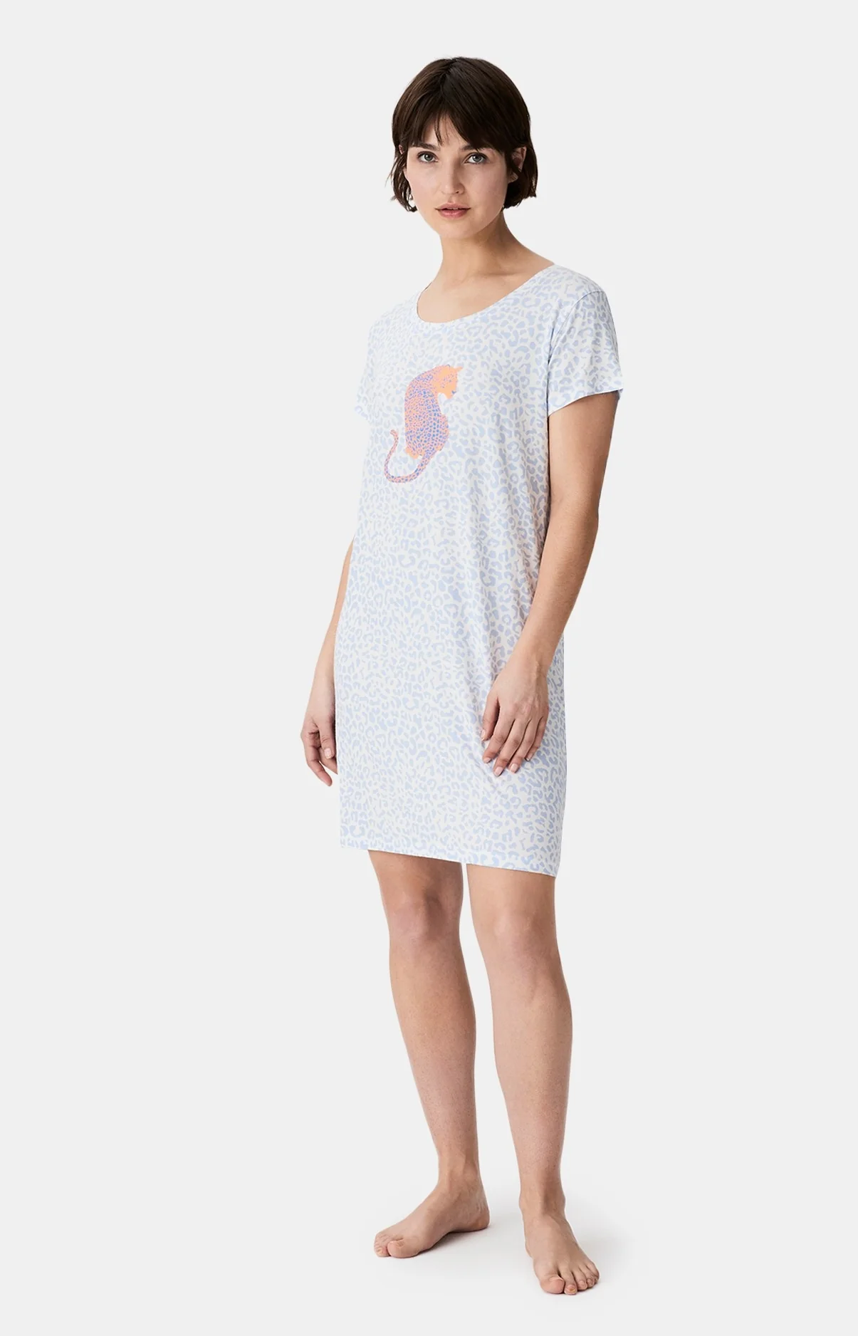 Fluide, doux et léger : voilà le combo parfait pour un confort optimal – Chemise de nuit Femme – Matière modal fluide et douce – Col rond, manches courtes – Sérigraphie poitrine – Longueur environ 90 cm – Motif exclusif créé à Paris – Confectionnée dans nos ateliers partenaires en Inde