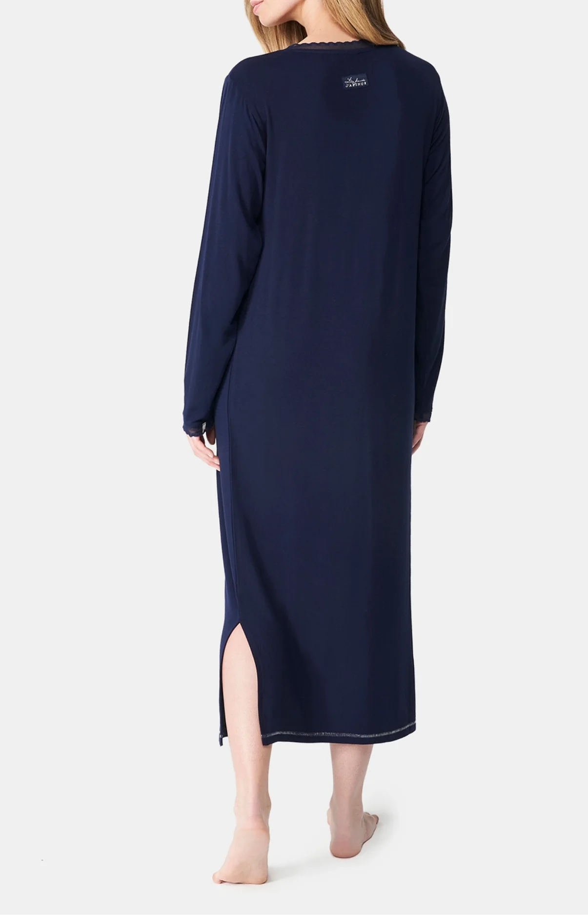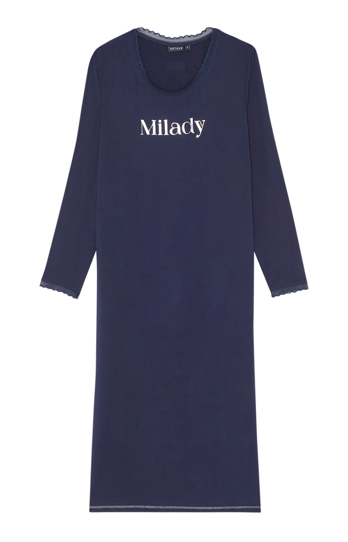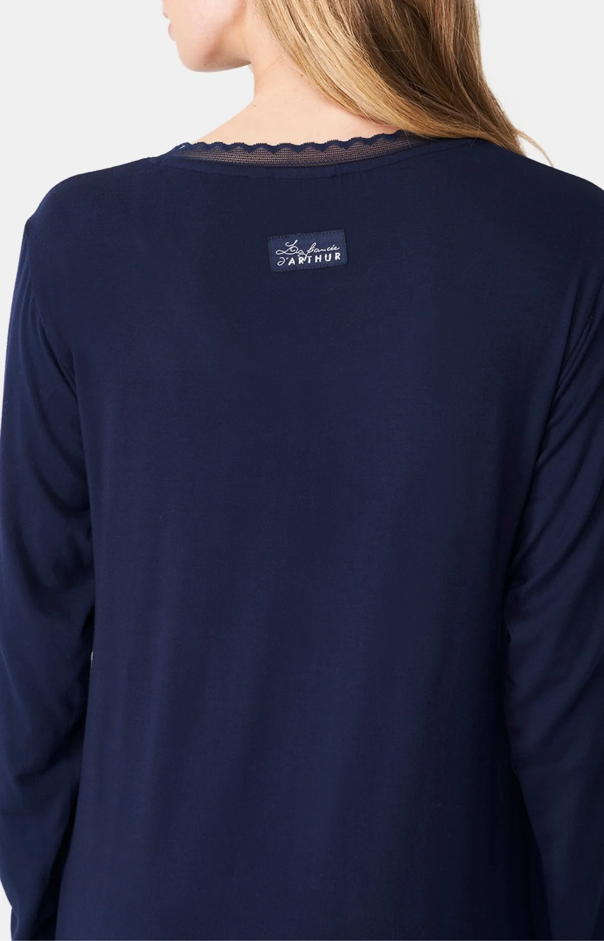 Fluide, doux et léger : voilà le combo parfait pour un confort optimal ! – Chemise de nuit femme – Matière modal fluide et douce – Manches longues, col rond – Finitions dentelle – Sérigraphie poitrine légèrement argentée – Longueur environ 120 cm, avec fentes sur les côtés – Confectionnée dans nos ateliers partenaires en […]