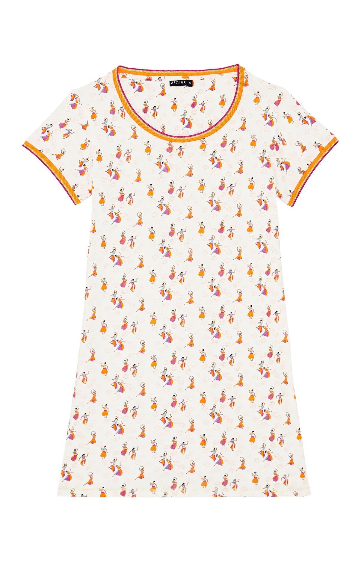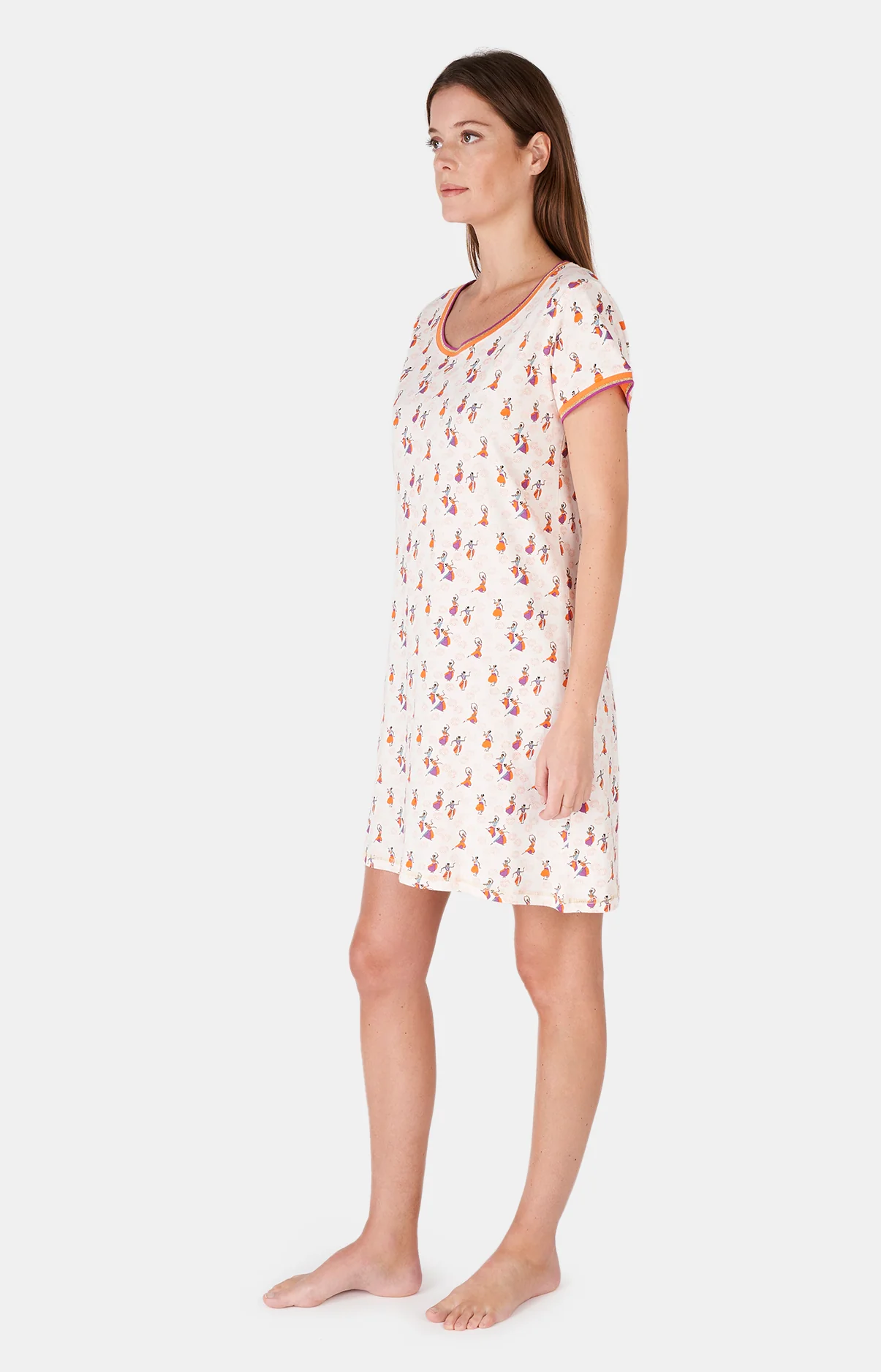 – Chemise de nuit Femme – 100% coton issu de l’agriculture biologique – Grand col rond, manches courtes – Bord-côte contrasté – Longueur environ 90 cm – Motif exclusif créé à Paris – Confectionnéé dans nos ateliers partenaires en Inde