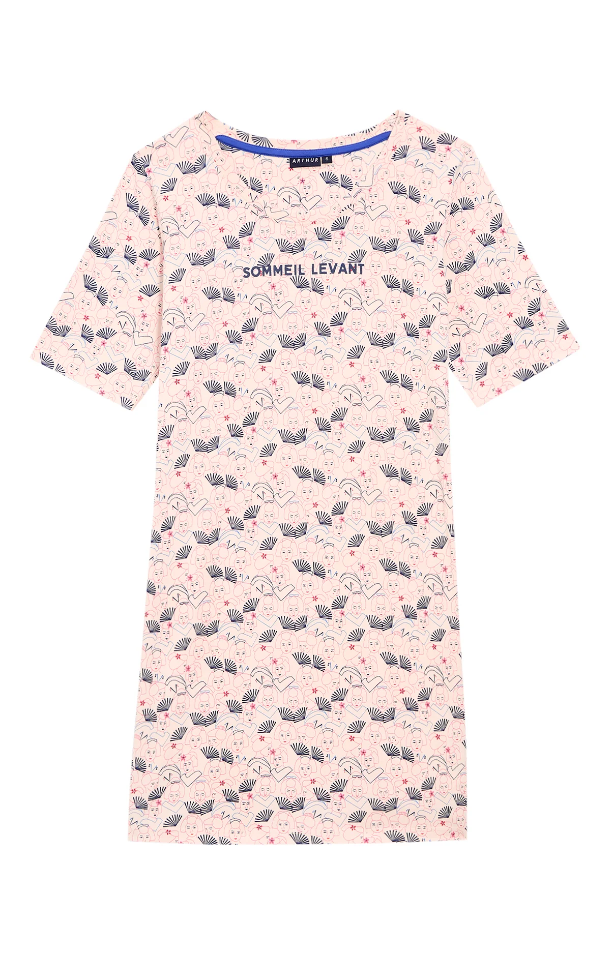 – Chemise de nuit Femme – 100% coton issu de l’agriculture biologique – Grand col rond, manches courtes – Sérigraphie poitrine – Longueur environ 90 cm – Motif exclusif créé à Paris – Confectionnée dans nos ateliers partenaires en Inde