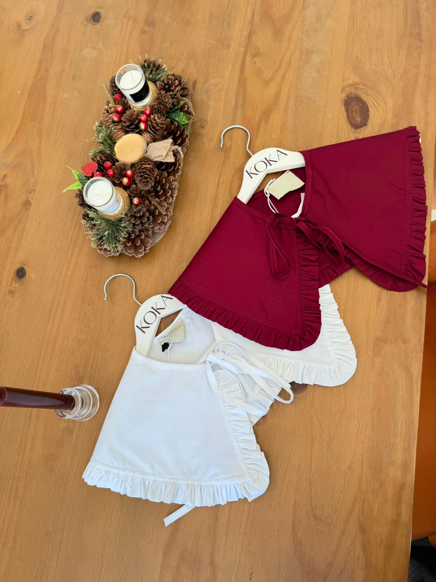 Col Claudine Couleurs : bordeaux ou blanc Bordé d’un volant 2 liens à nouer Fabrication Italienne Composition et entretien Composition : 100% Coton Entretien : Lavage à la main conseillé