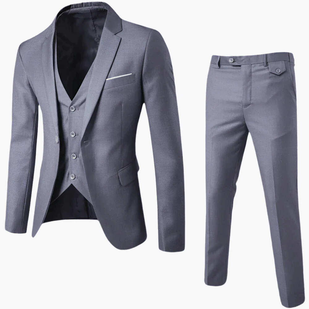 La veste cintrée épouse parfaitement la ligne du corps, tandis que le pantalon à la coupe élégante complète l’ensemble. Sa polyvalence permet de le porter avec une multitude de chemises et de cravates pour varier les styles selon l’occasion.