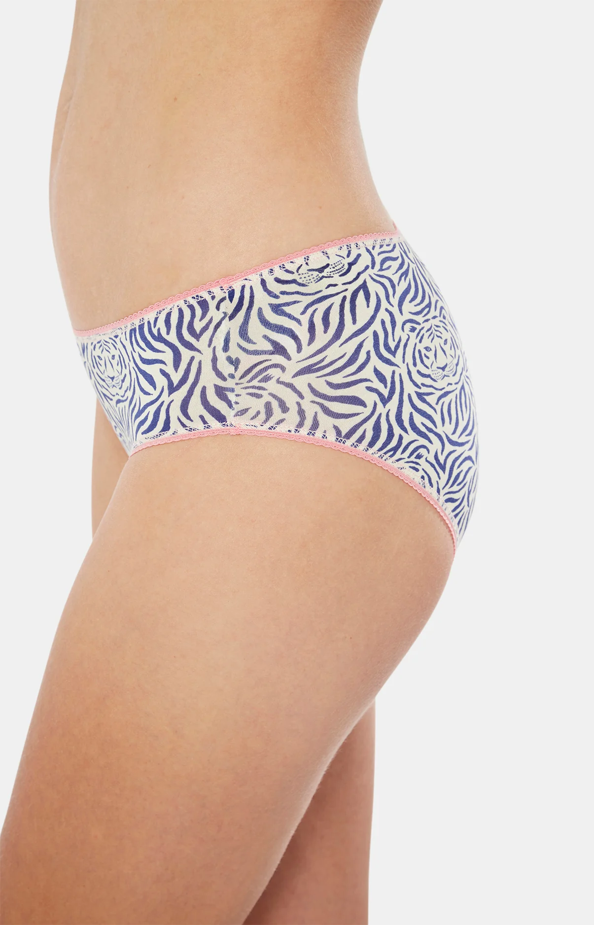 Grrrr… ! Laissez surgir la part de félin qui sommeille en vous avec cette culotte femme taille basse Tigre. A la fois originale, artistique, confortable et douce sur votre peau, ce modèle animalier remplira sa mission à merveille : offrir confort et style dès que vous l’aurez enfilée.