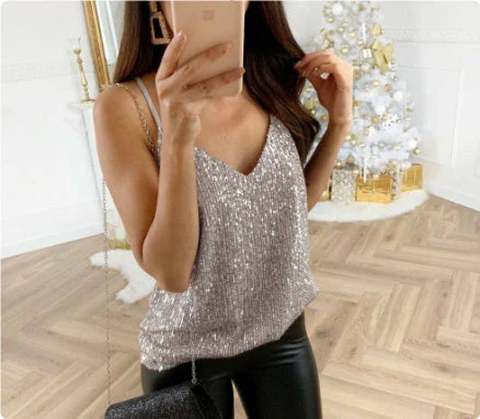 Débardeur Femme Élégant à Sequins Style Socialite pour Soirée et Sorties