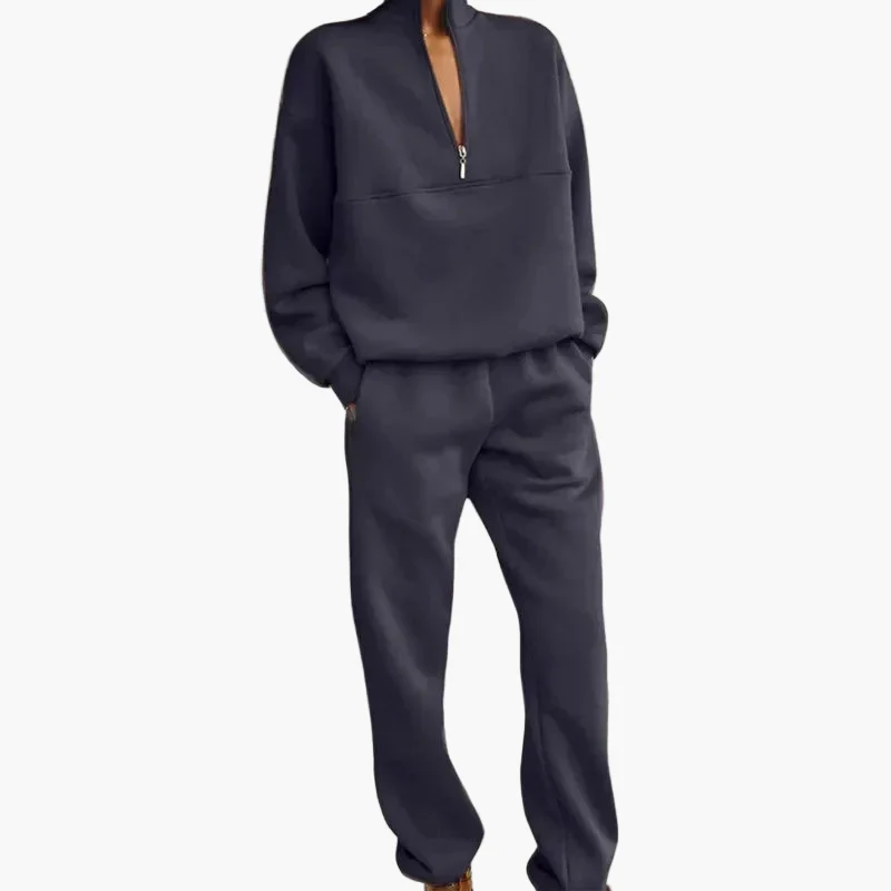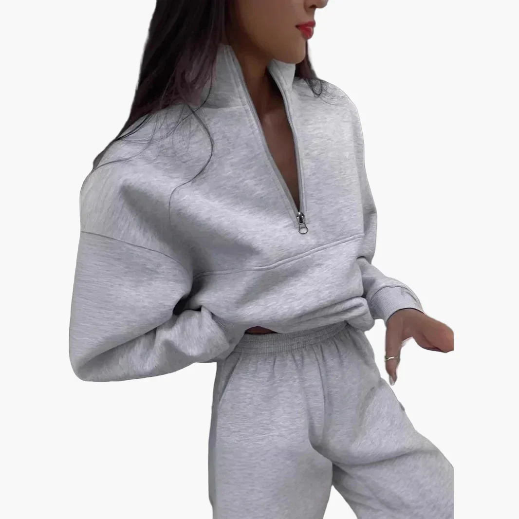 Ensemble de survêtement décontracté à col zippé pour femme – Style moderne et urbain