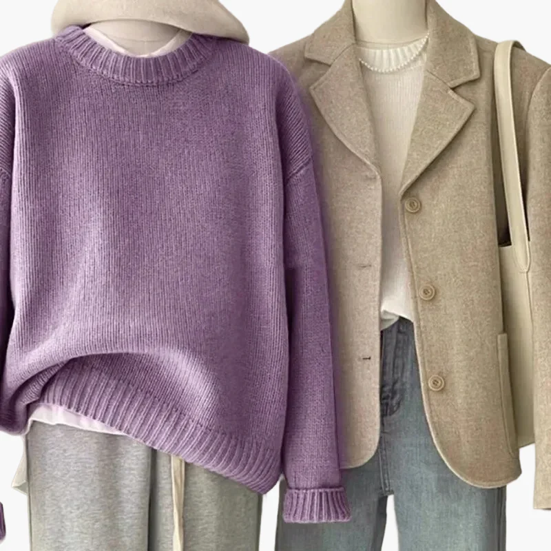 Ensemble décontracté femme style coréen – pull ample et veste chic pour look quotidien élégant