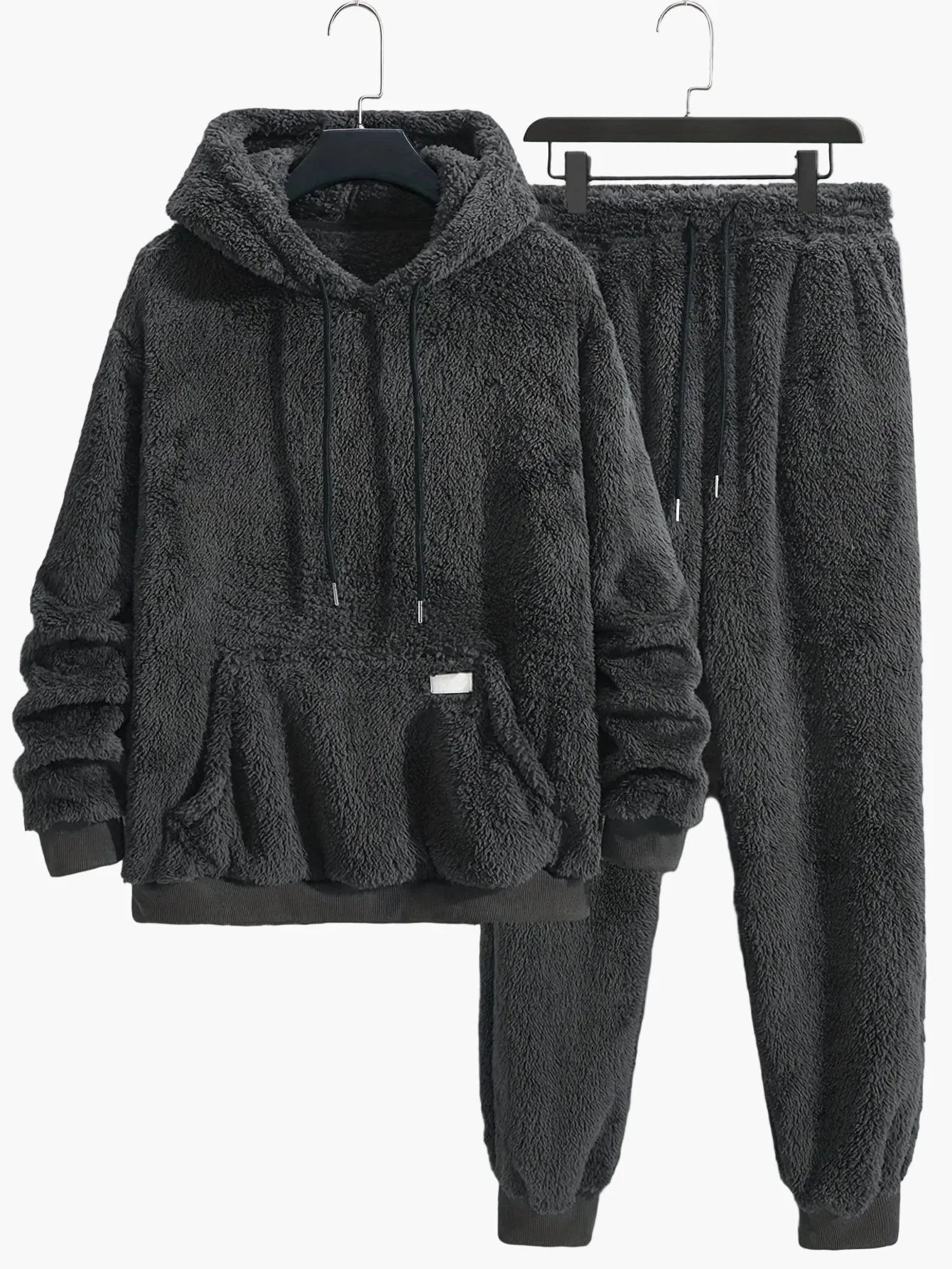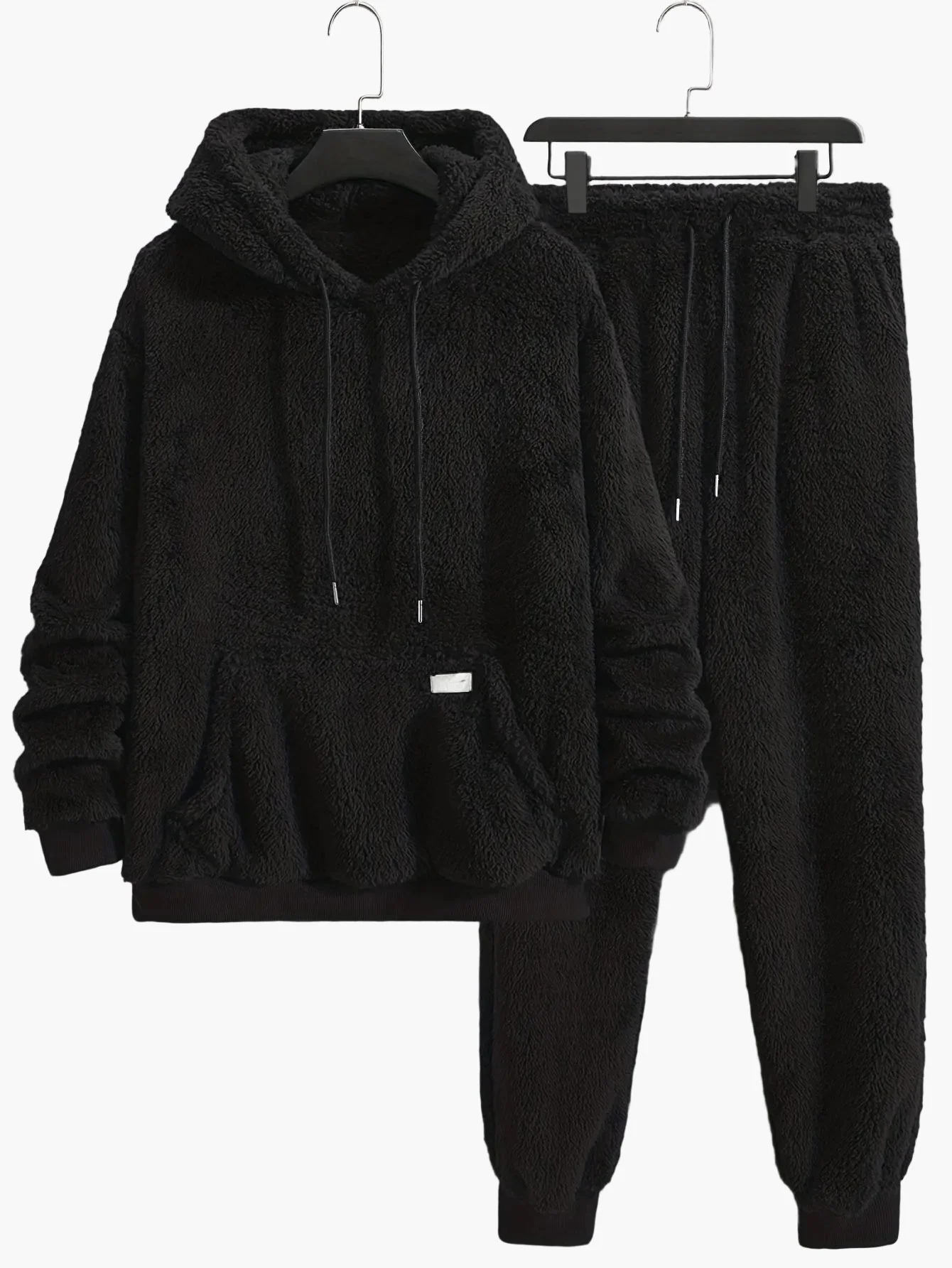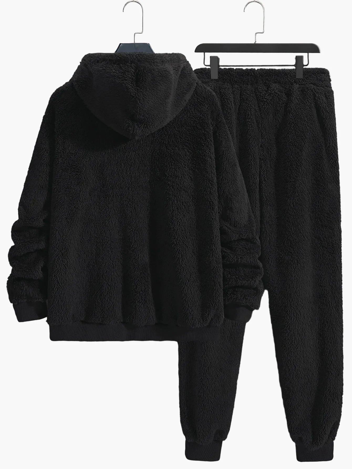 Ensemble décontracté homme sweat à capuche et pantalon style peluche pour l’automne et l’hiver
