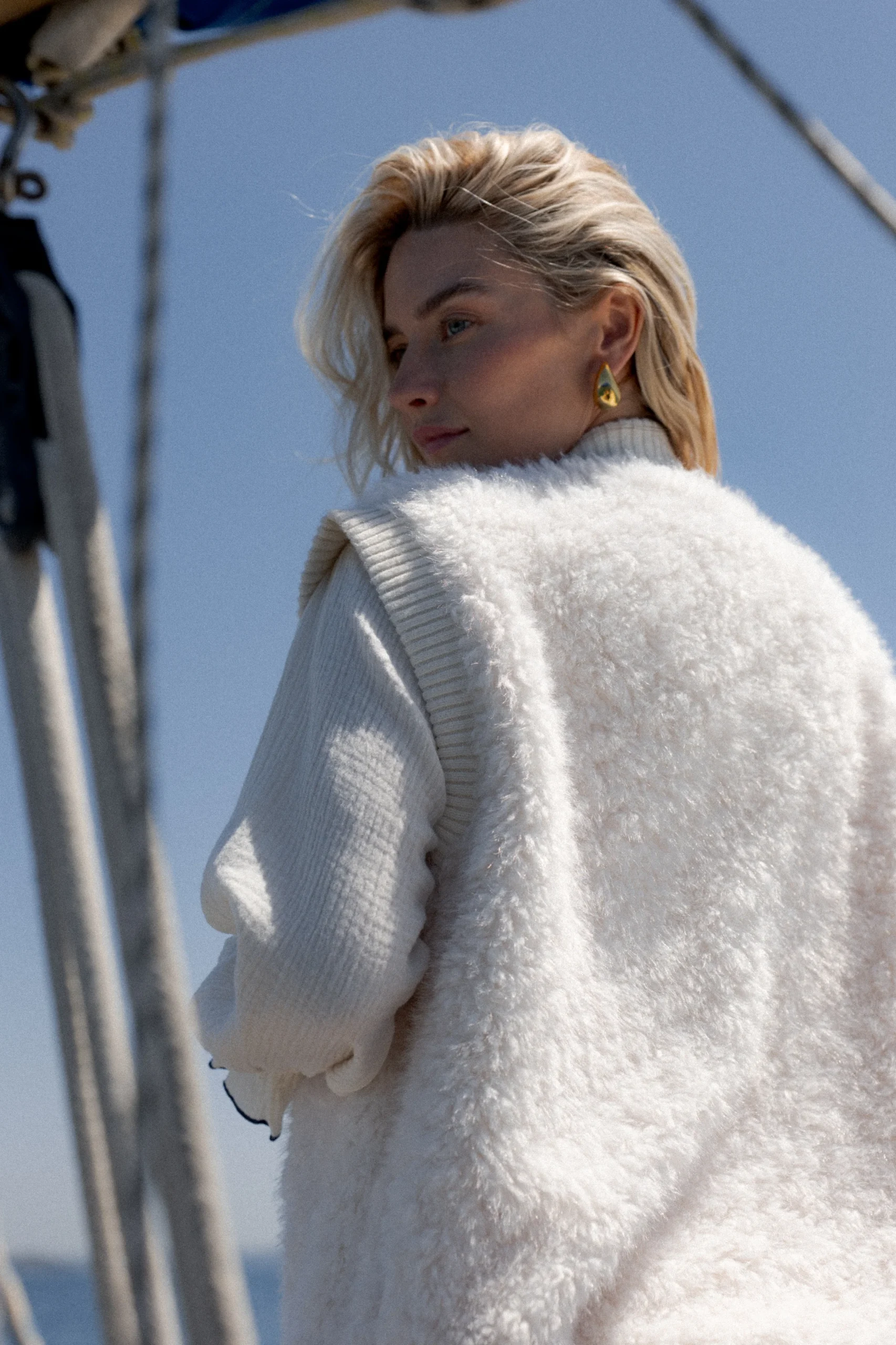 Détails : Fermeture boutonnée, col rond, maille côtelée contrastante, toucher ultra doux façon sherpa