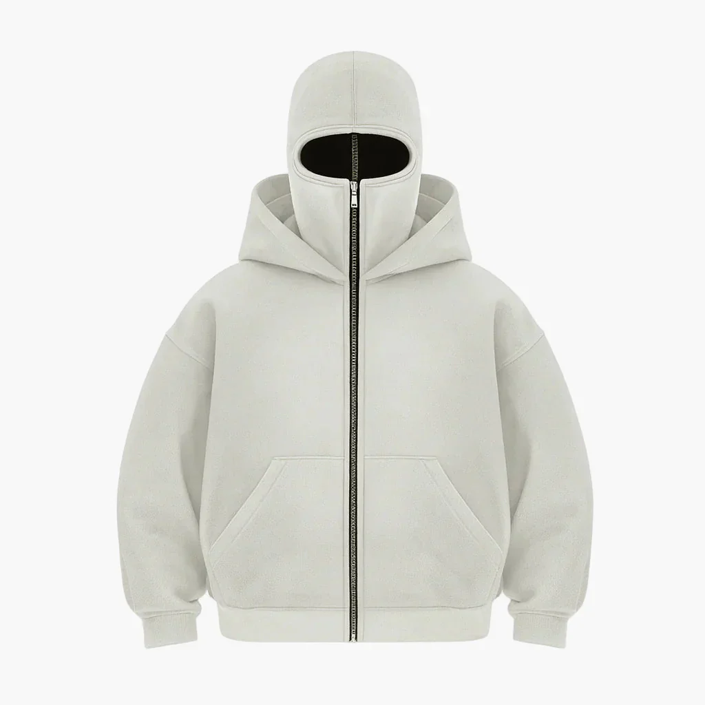 Hoodie zippé style balaclava pour homme – Urbain, minimaliste, idéal pour l’hiver