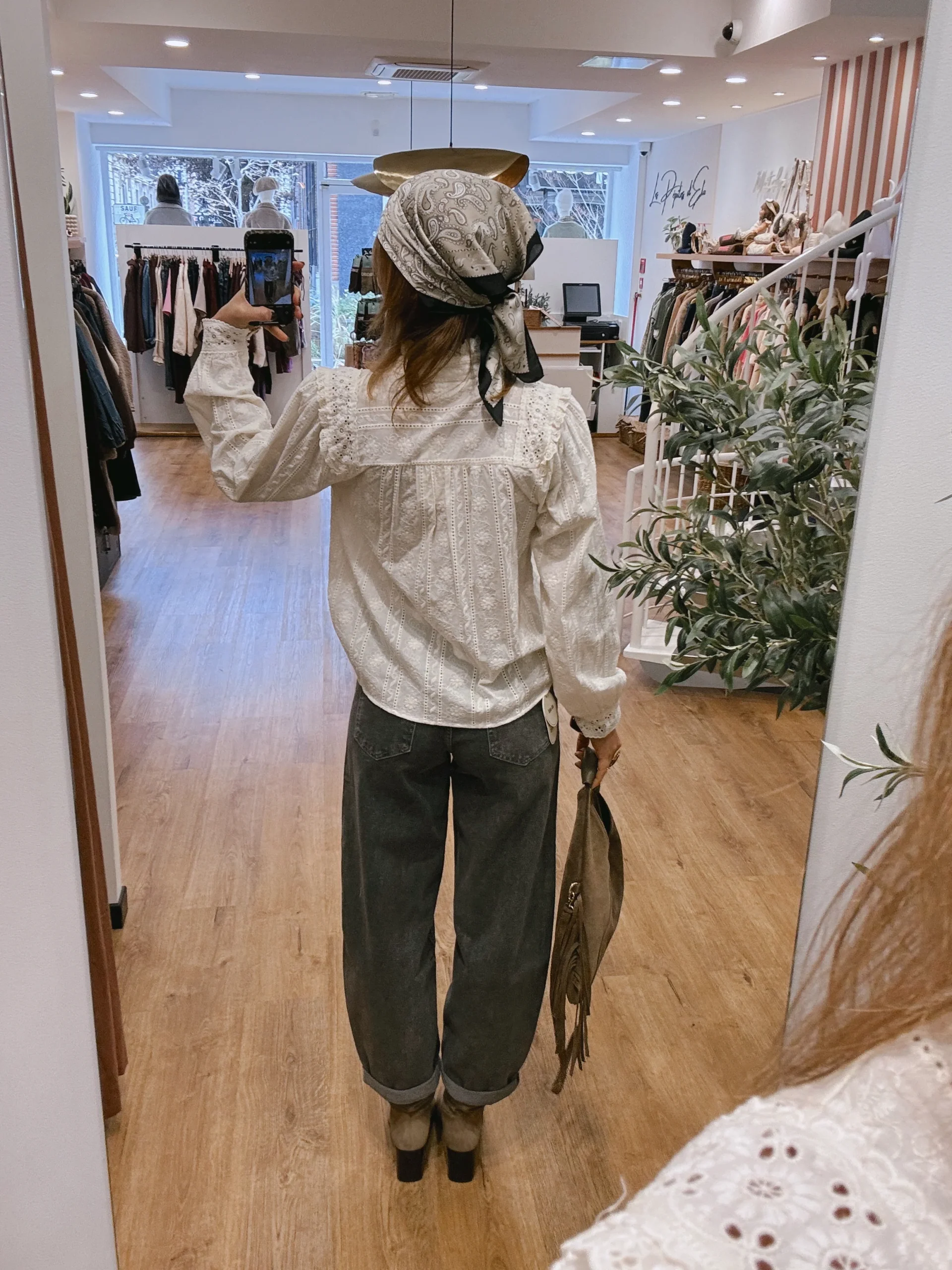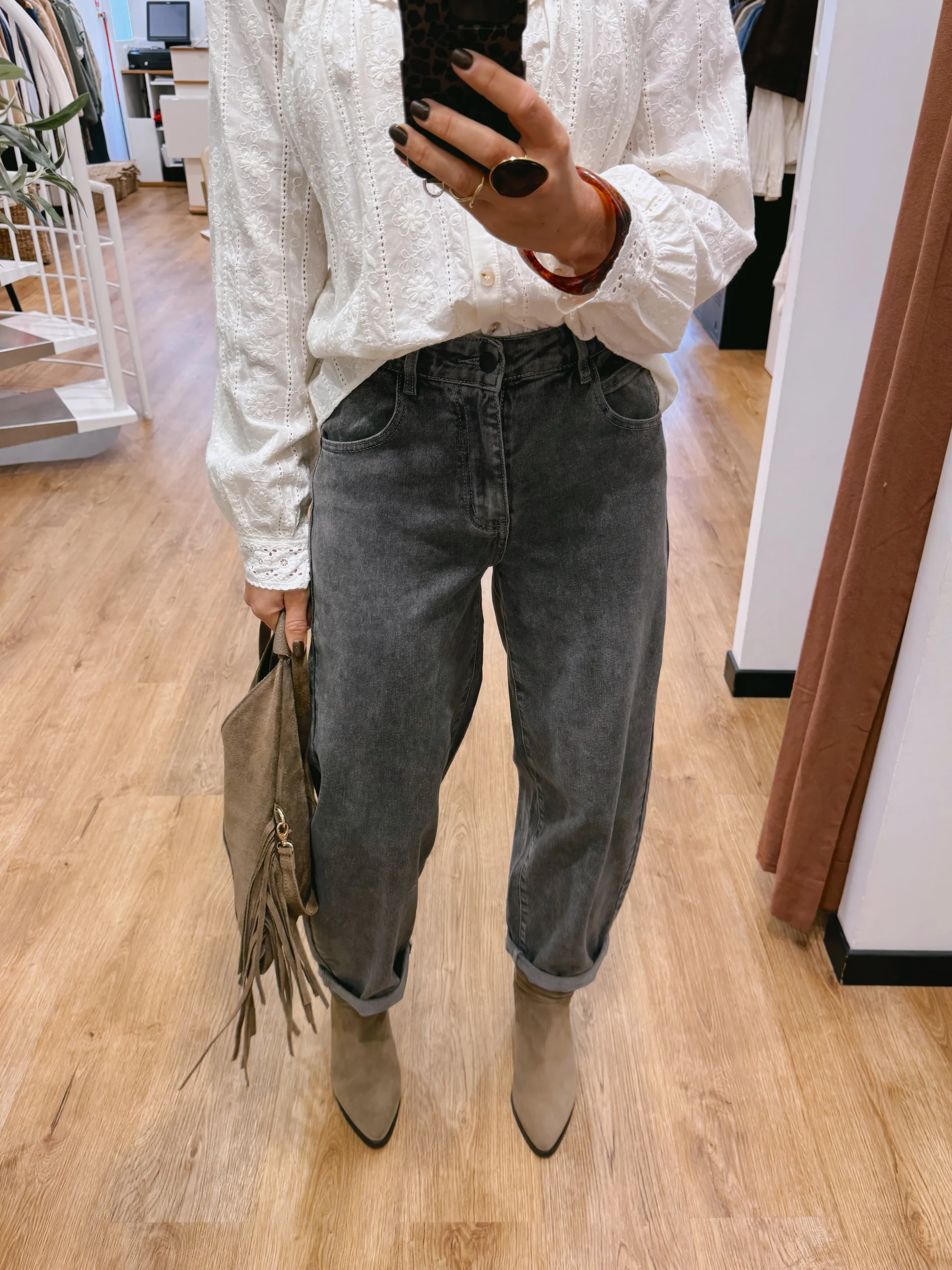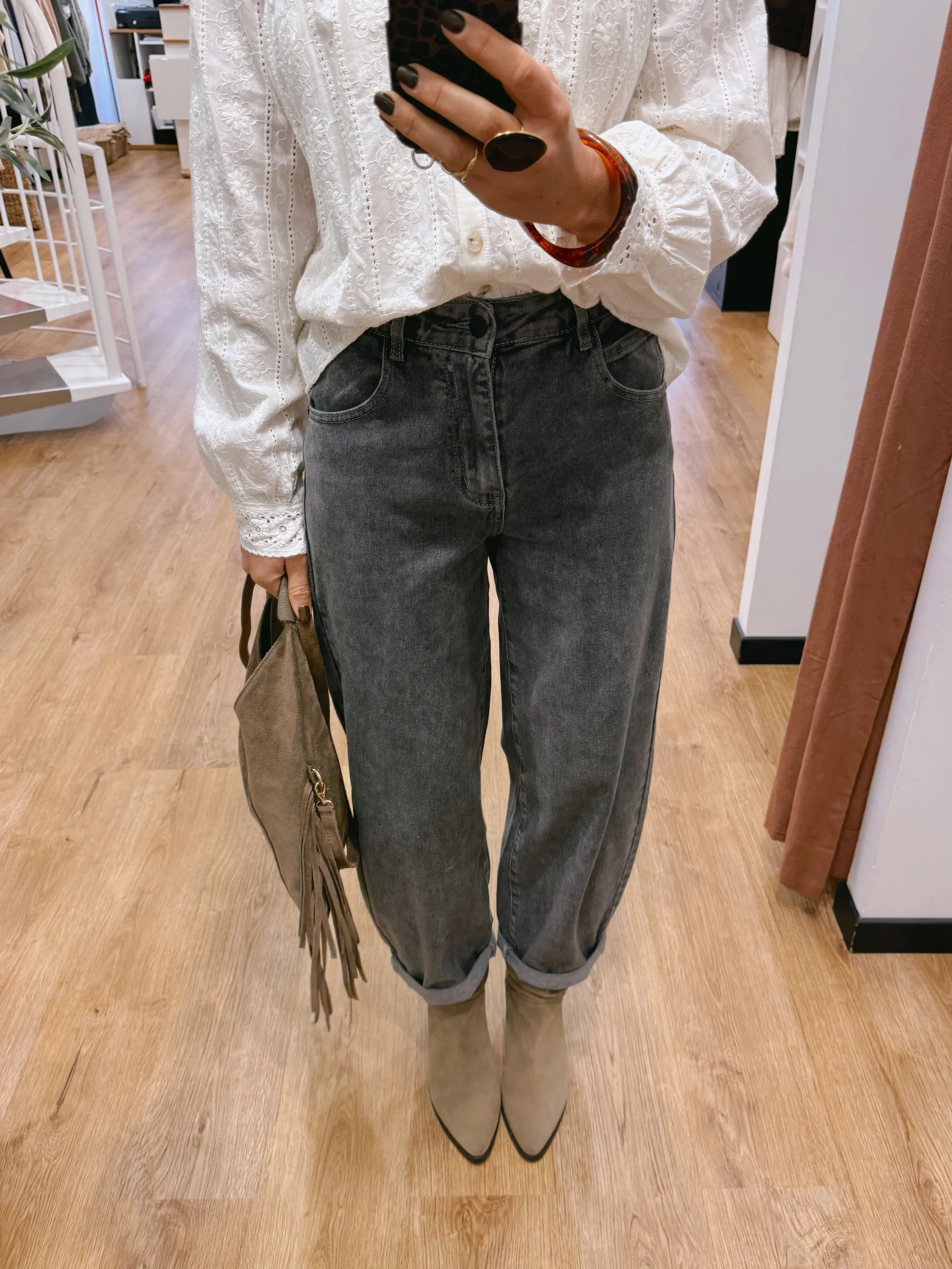 Composition: 62% coton 36% polyester 2% élasthanne Coupe balloon Taille haute Fermeture à bouton et zip Le Jean Balloon marron revisite la silhouette iconique du jean oversize avec une touche contemporaine. Portez-le avec une chemise fluide et des bottines pour un look citadin raffiné, ou avec un pull oversize pour un style plus décontracté. Le […]