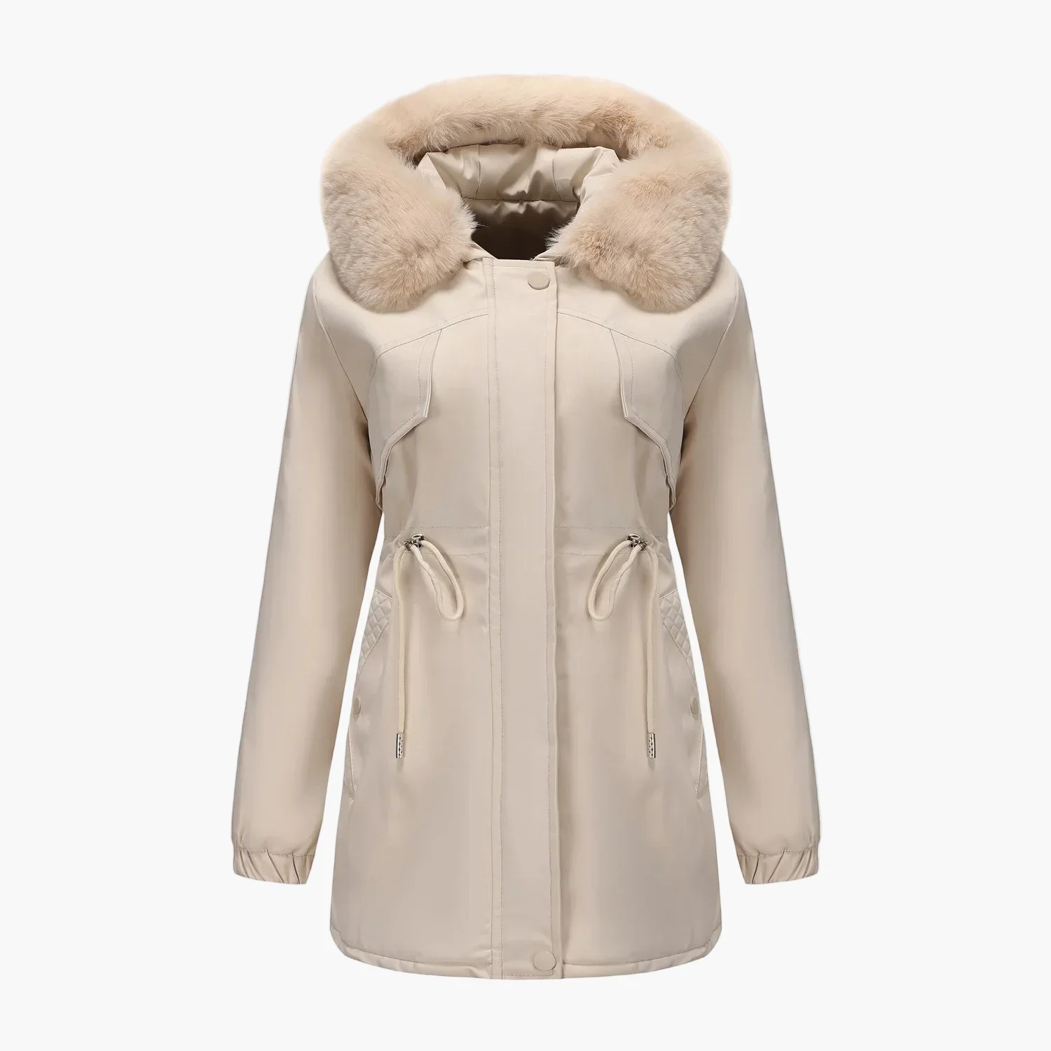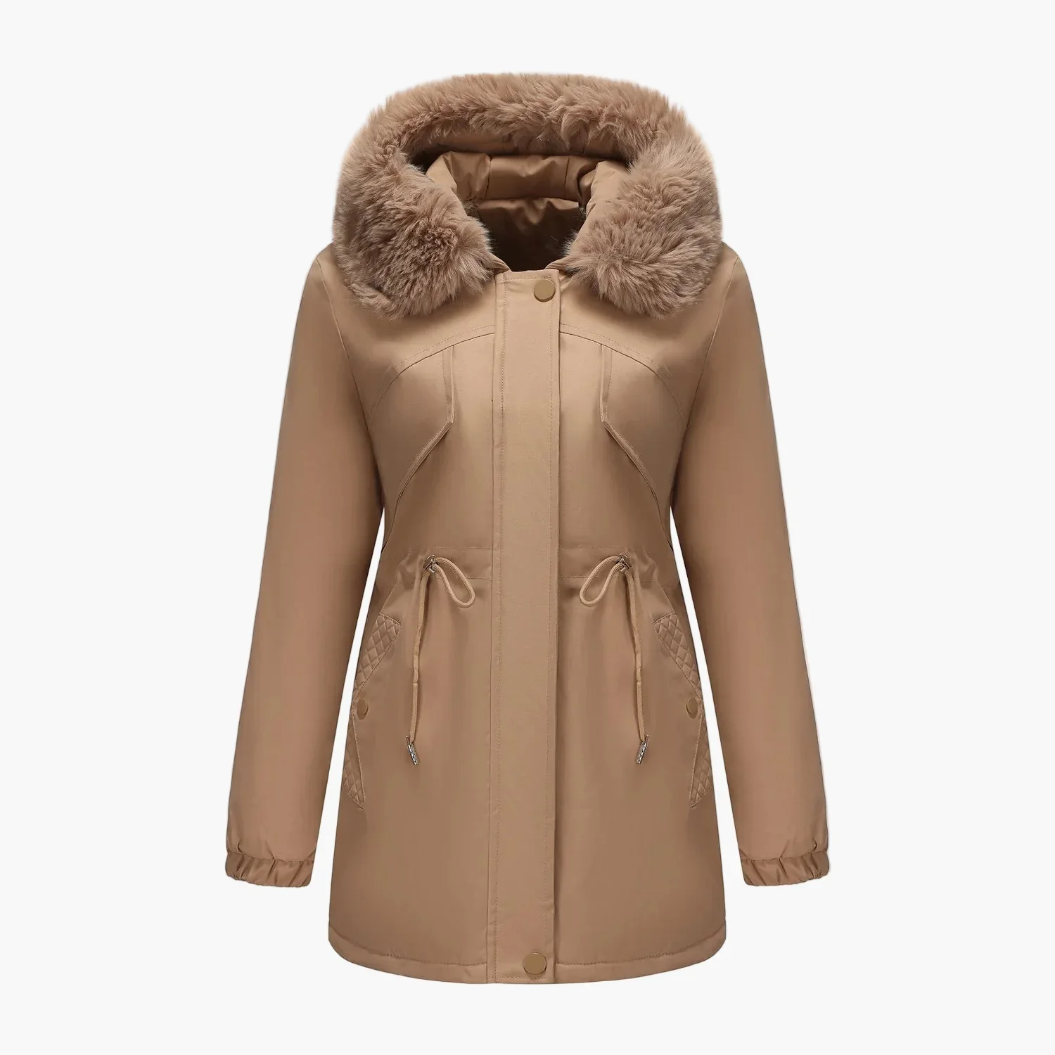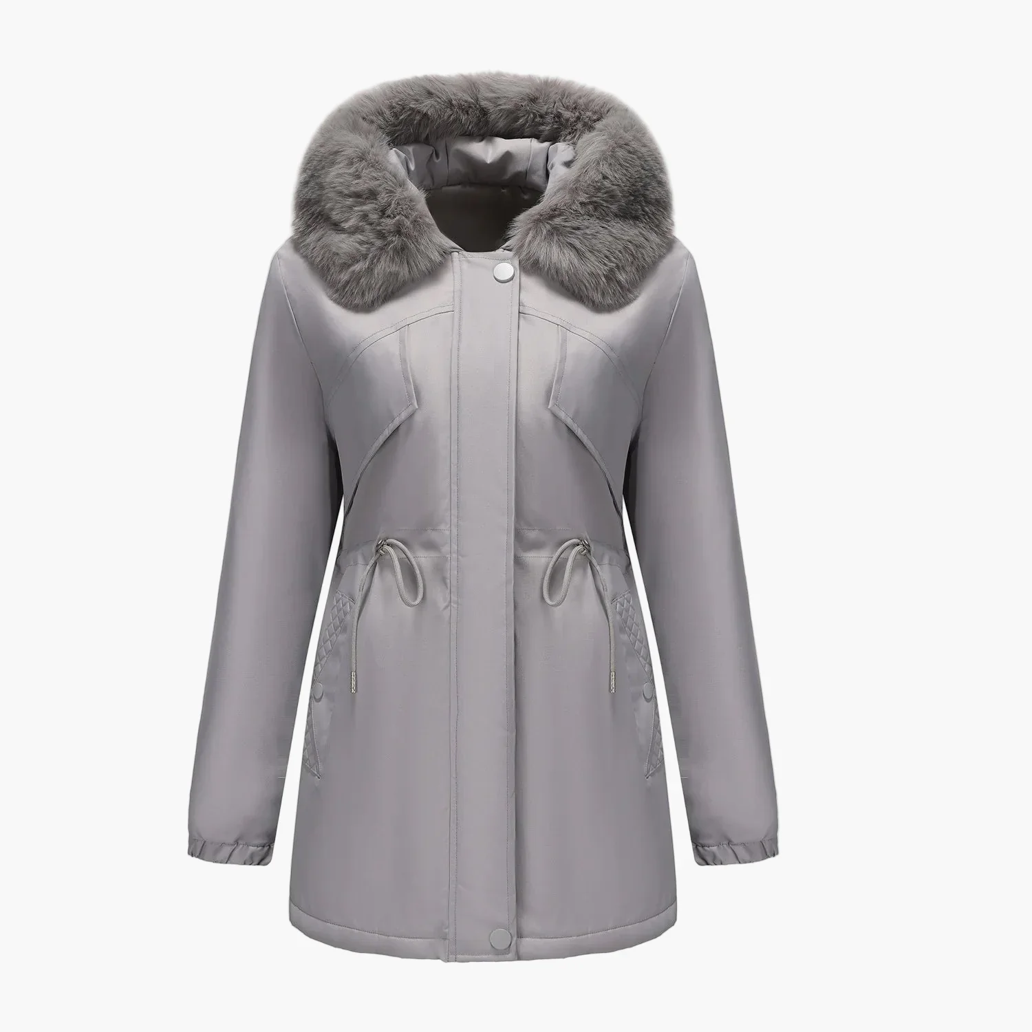 Affrontez l’hiver avec élégance grâce à ce manteau à capuche pour femme, doté d’un superbe col en fausse fourrure qui apporte une touche de raffinement à votre garde-robe. Sa coupe féminine, associée à une taille ajustable et des manches longues, vous assure chaleur et confort lors des journées froides. Pratique pour les sorties en ville ou les promenades hivernales, ce manteau conjugue fonctionnalité et style chic. Les poches latérales zippées permettent de garder vos essentiels à portée de main, tandis que la capuche doublée protège efficacement du vent et du froid. Disponible en plusieurs couleurs tendance, il s’adapte à toutes vos envies et tenues. Parfait pour rester stylée tout en étant bien protégée durant la saison froide.