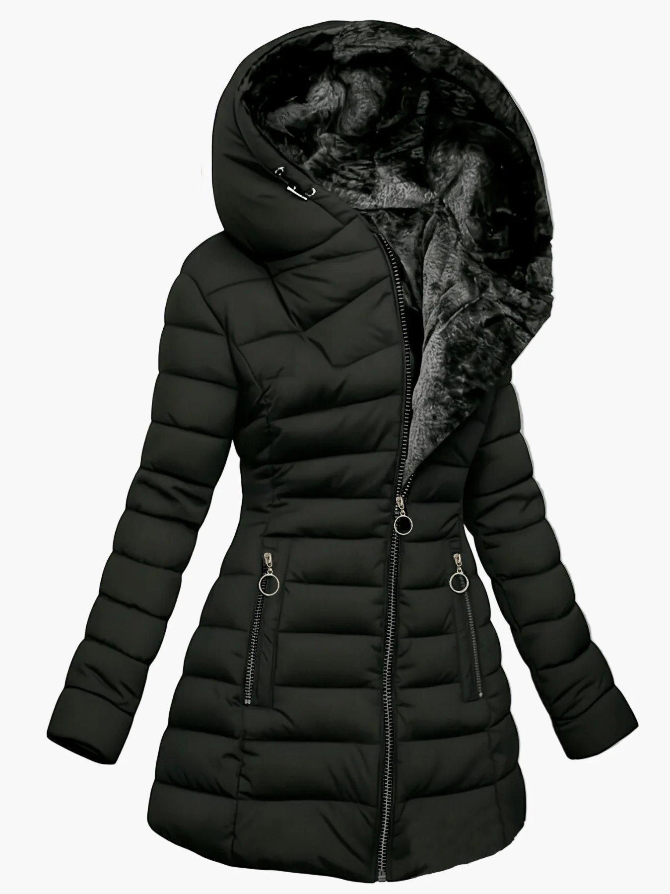 Manteau d’hiver élégant pour femme à capuche large – Style matelassé urbain