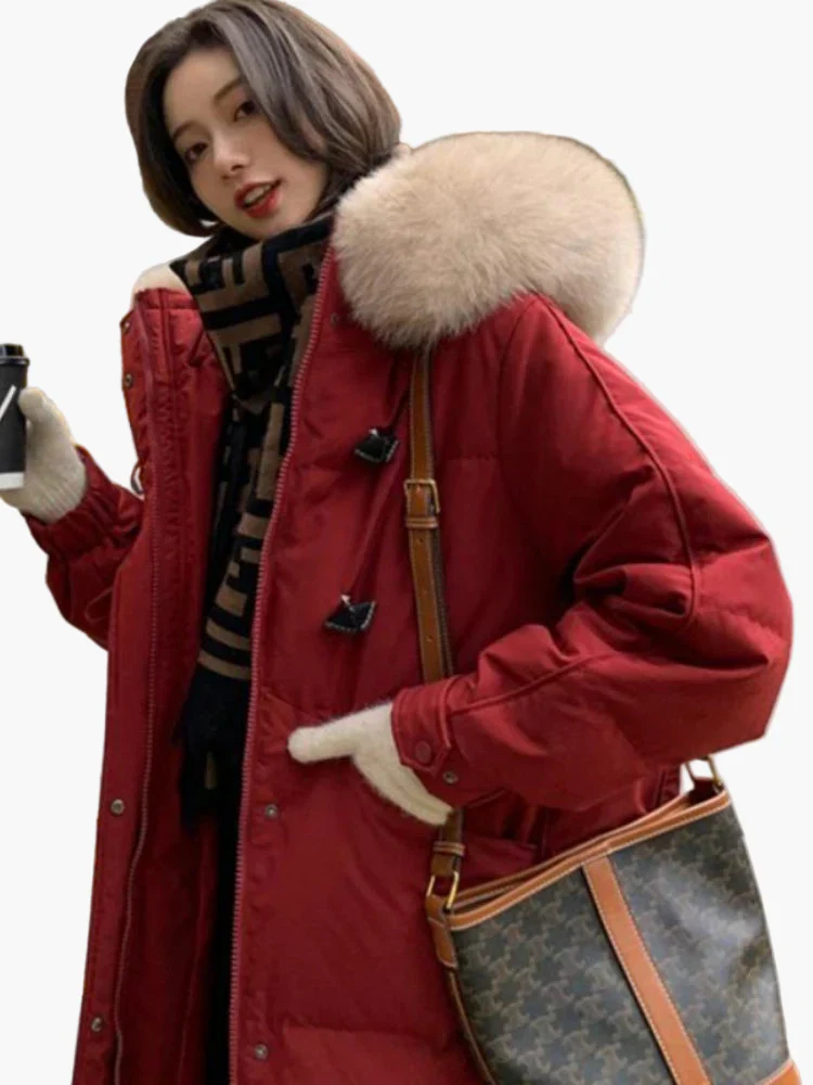 Manteau d’hiver épais à capuche avec fausse fourrure pour femme – Style décontracté et chaud
