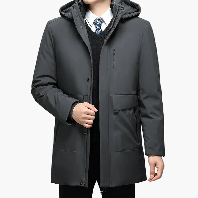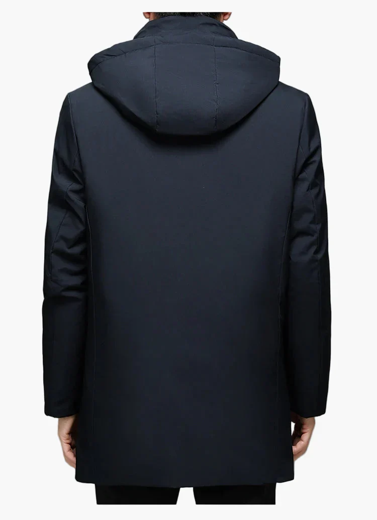 Manteau d’hiver homme élégant style business, veste longue à capuche pour usage professionnel et quotidien