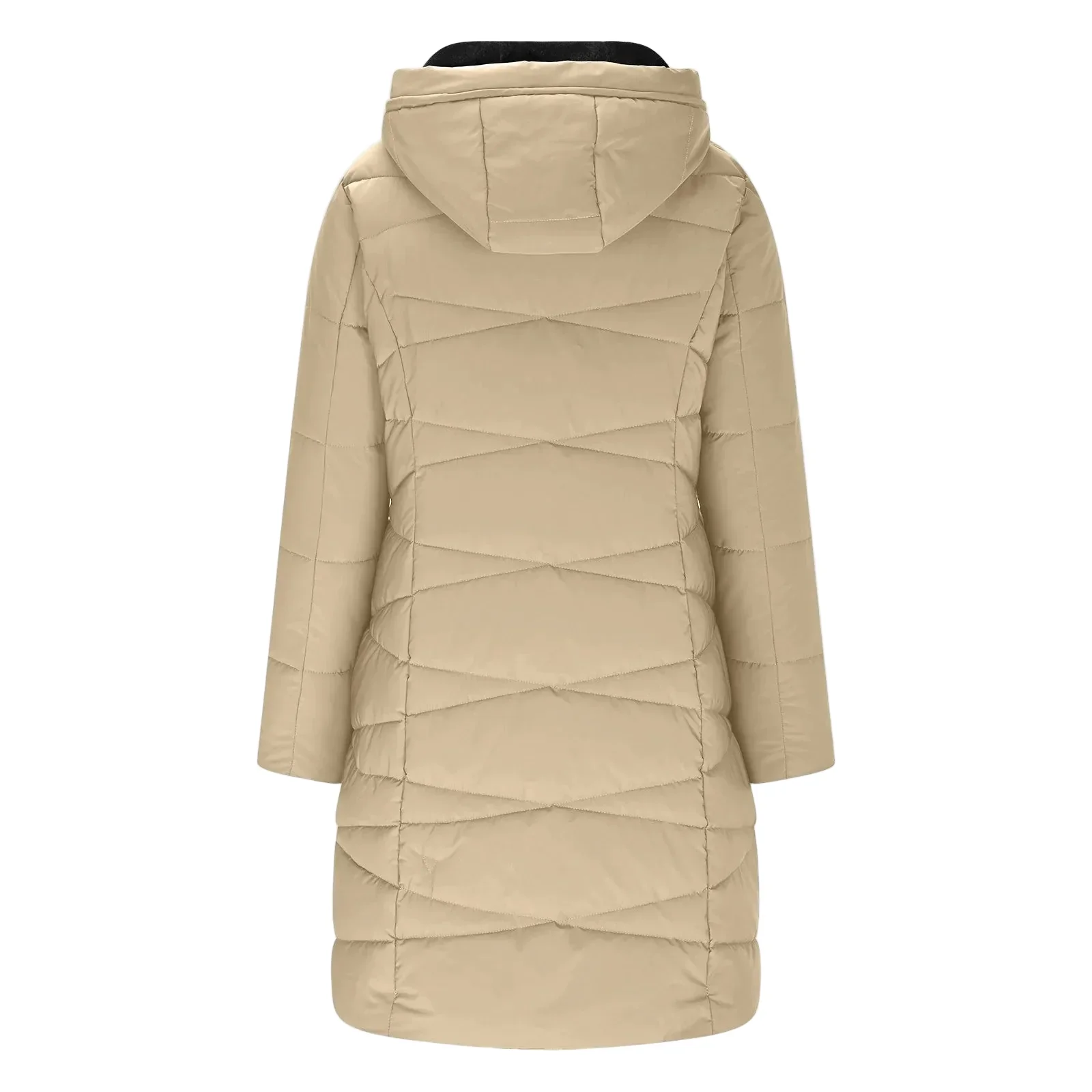 Manteau d’hiver long pour femme – Doudoune matelassée à capuche coupe-vent, style chic et décontracté
